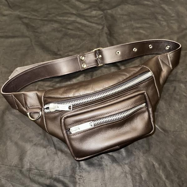 レザーウエストポーチになります。 別名"SAFTEY POUCH"第3段、これがあれば海外でも安心です。 オーナー自ら実証済です。この機会にどうぞ。 メインジッパーはALBERTジッパーを使用しています。バックルは交換可能です。裏地には軍事用品にも使われるコーデュラを使用しています。 前ポケット、メイン、裏側、前ポケット裏の4箇所収納できます。 腰に、ボディーバッグとしても使用できます。 収納も財布、携帯、タバコ等、収納できます。 | |