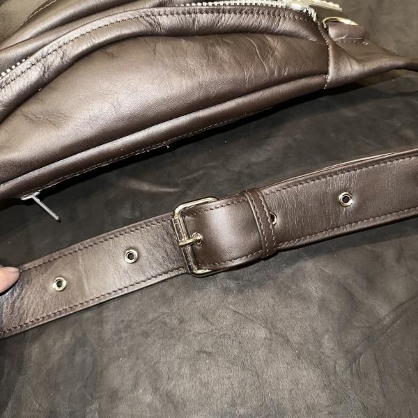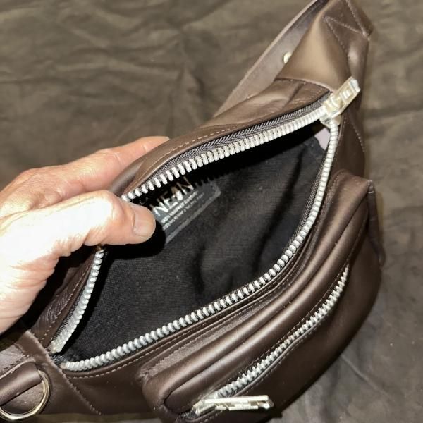 Leather waist pouch TYPE3(ALBERT ZIP)CHOCOLATE BROWN