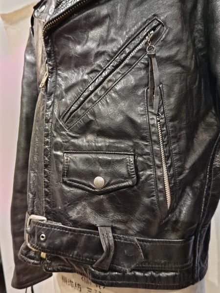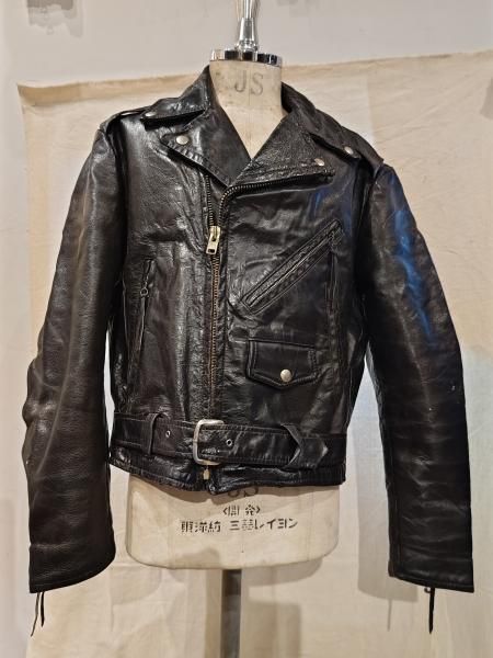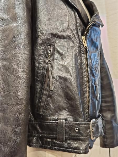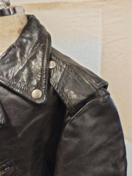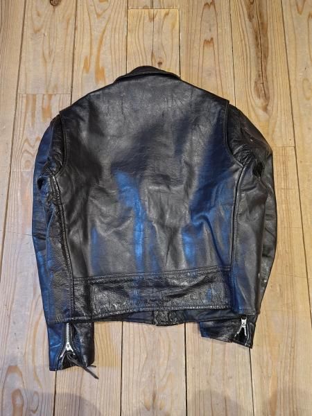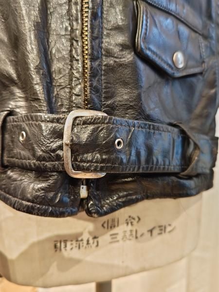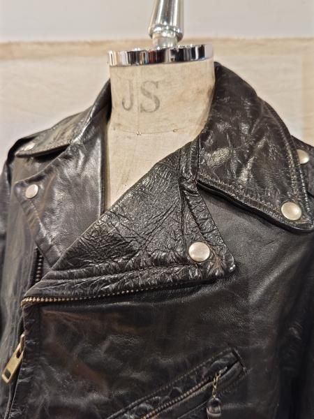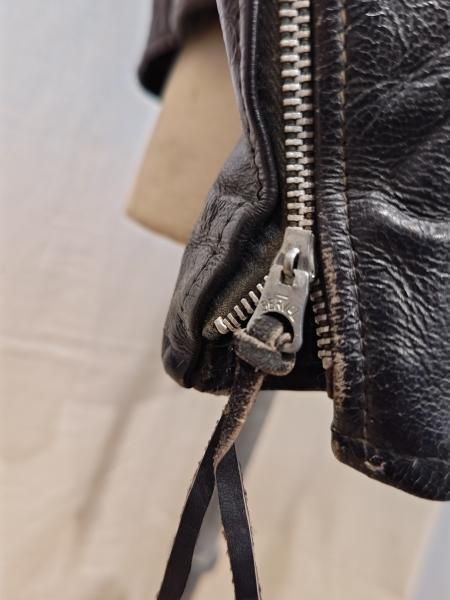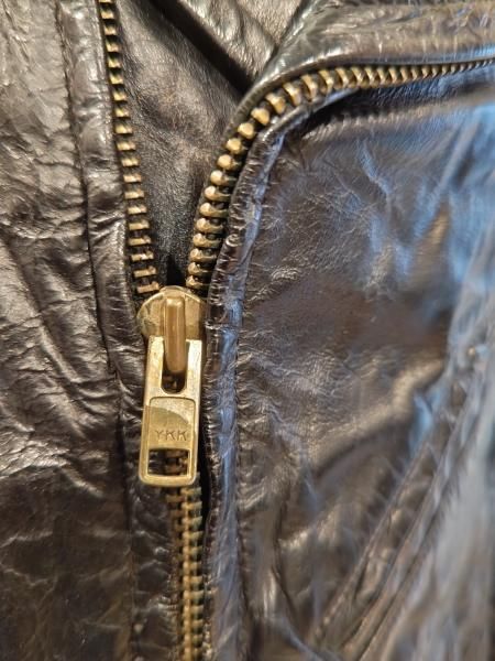 70年代のシアーズローバックのレザージャケットです。 フロントジッパーがYKKに交換されています。 レザーの状態は、ステッチもしっかりとしています。 革スレは全体的にみられますが、大きなダメージはみられません。 ファスナー稼動も問題ありません。 | |