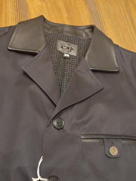 <商品説明> | 上質なコットン地で仕立てたハーフ丈のコートです。 裏地には千鳥柄のウール地、襟にはレザーを使っています。|
