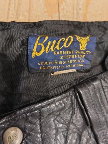 50年代のBUCOのレザーパンツです。 全てのジップがTALONジップで、 良い雰囲気のパンツで、革も厚く、バイクを乗るのに最適です。 多少レザーに擦り傷は有ります。