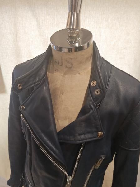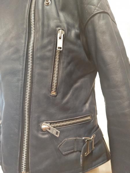 70年代のウルフレザーのレディースレザージャケットです。 フロントジッパーは、YKKです。レザーの状態は、ステッチもしっかりとしています。 革スレは全体的にみられますが大きなダメージはみられません。ファスナー稼動も問題ありません。 | |