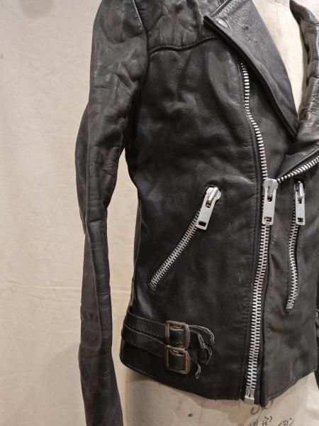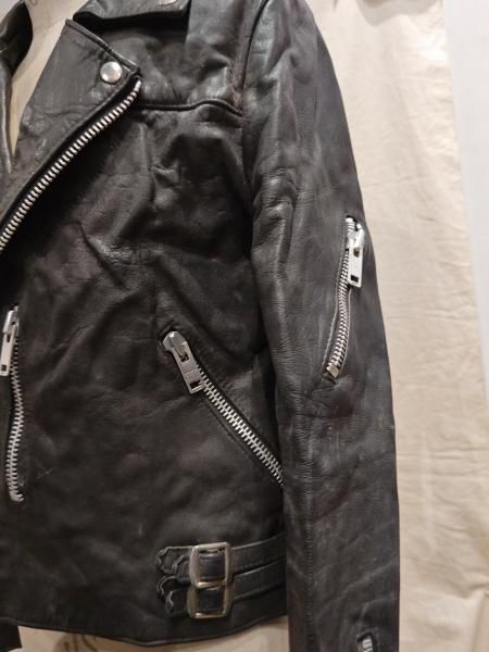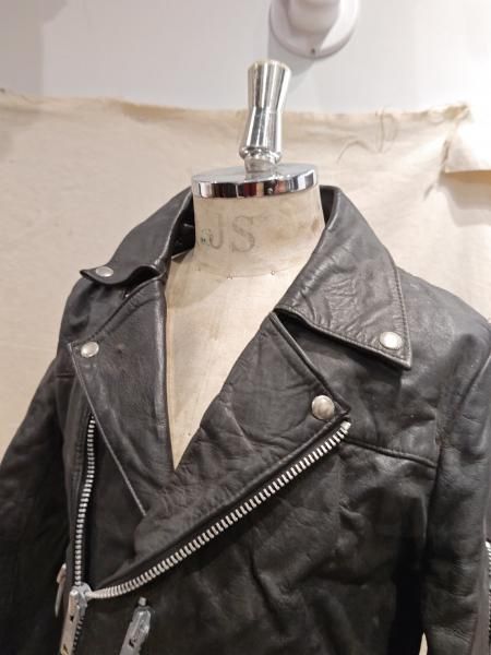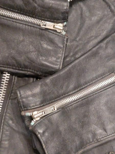 70~80年代ヨーロッパ製のレザージャケットですメインジッパーはアルミYKKです。レザーの状態は、ステッチもしっかりとしています。 革スレは全体的にみられますが、大きなダメージはみられません。 ファスナー稼動も問題ありません。