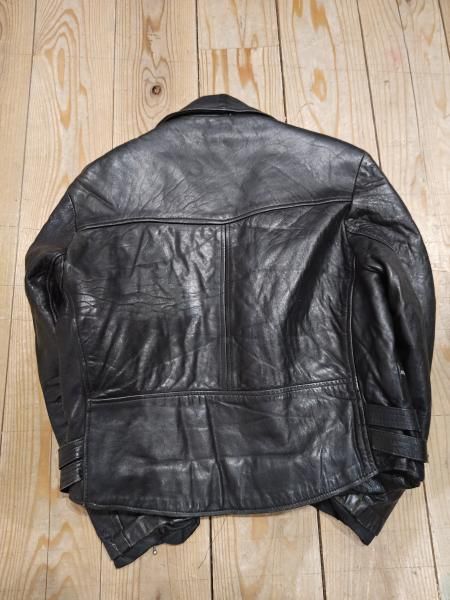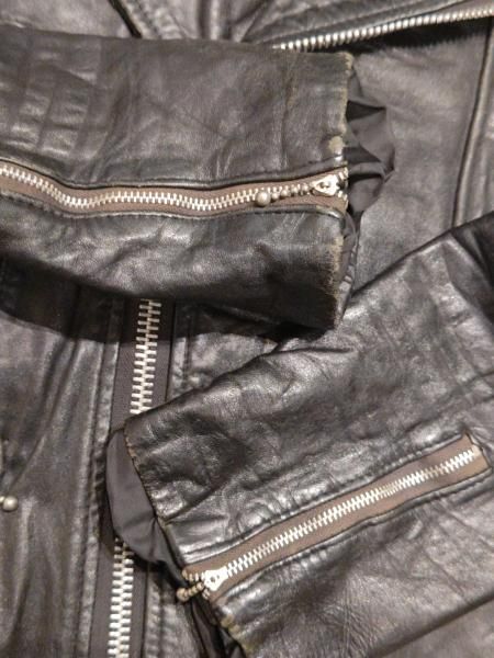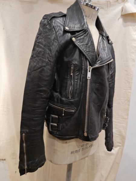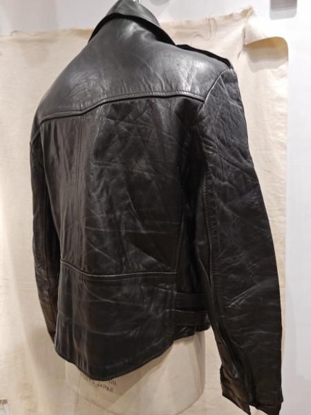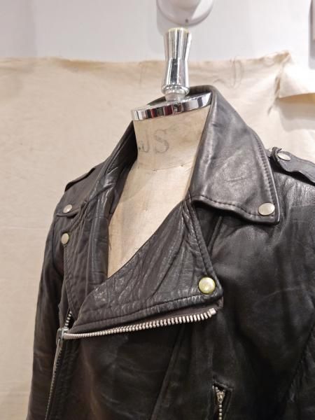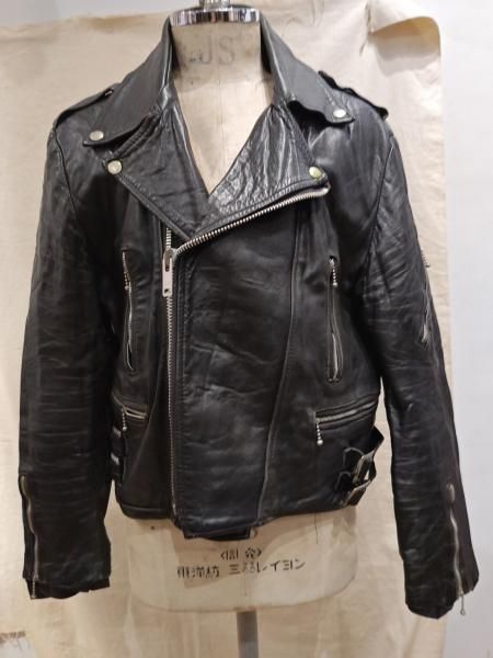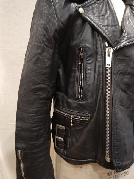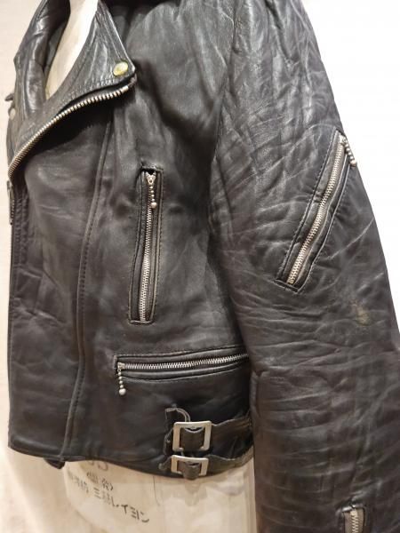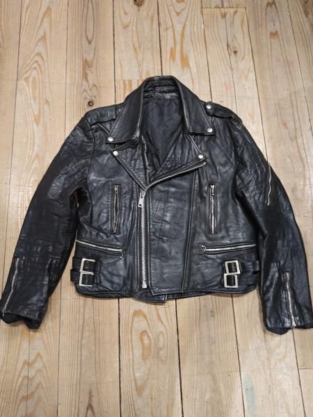 80年代ヨーロッパ製のレザーライダースジャケットです。 メインジッパーはYKKです。レザーの状態は、ステッチもしっかりとしています。 革スレは全体的にみられます。大きなダメージはみられません。 ファスナー稼動も問題ありません。右胸ジッパーが閉まりません。 | |