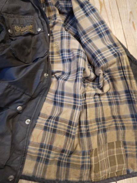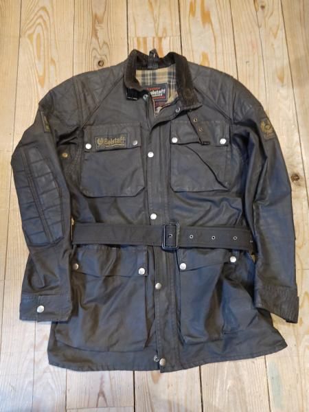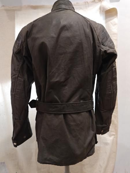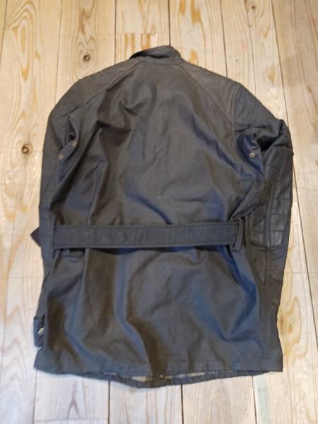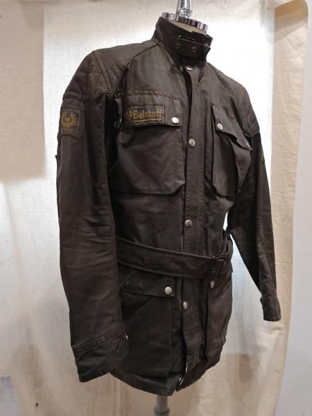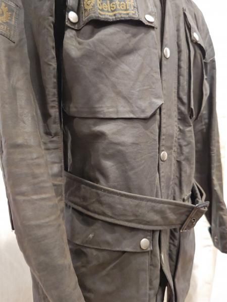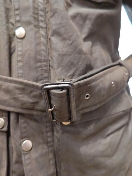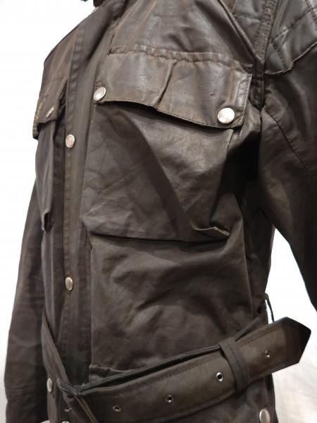 70年代のBelstaffのトライアルマスターオイルドジャケットです。 USEDオイルドアイテムですので使用感、薄汚れ、あたり、擦れ、オイルド独特の匂いなどございますが、ビンテージアイテムのリアルな表情として捉えていただき御願いします。ドットボタンが全て交換されています。ベルトはビンテージBelstaffパンツを解体した生地で製作いたしました。 | ブランド名 | Belstaff |