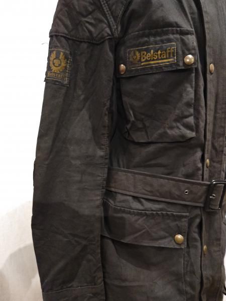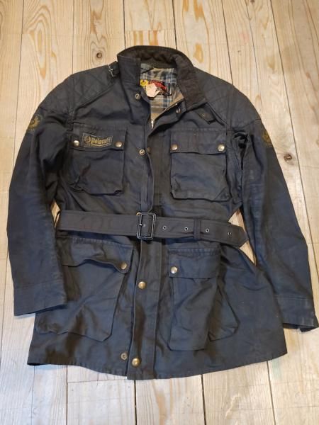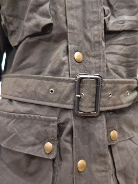 70~80年代のBelstaffのトライアルマスターオイルドジャケットです。 USEDオイルドアイテムですので使用感、薄汚れ、あたり、擦れ、オイルド独特の匂いなどございますが、ビンテージアイテムのリアルな表情として捉えていただき御願いします。ドットボタンが全て交換されています。ベルトはビンテージBelstaffパンツを解体した生地で製作いたしました。 | ブランド名 | Belstaff |