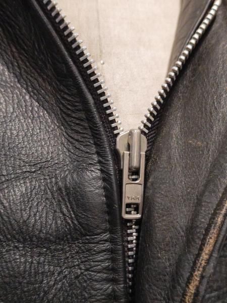フロントジッパーはYKKです。 レザーの状態は、ステッチもしっかりとしています。 革スレは全体的にみられますが、大きなダメージはみられません。 ファスナー稼動も問題ありません。