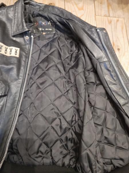 フロントジッパーはYKKです。 レザーの状態は、ステッチもしっかりとしています。 革スレは全体的にみられますが、大きなダメージはみられません。 ファスナー稼動も問題ありません。