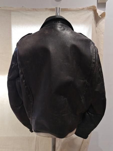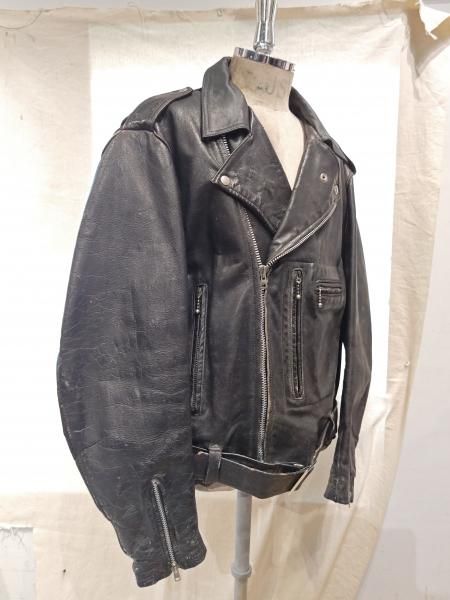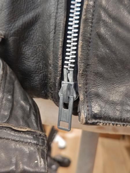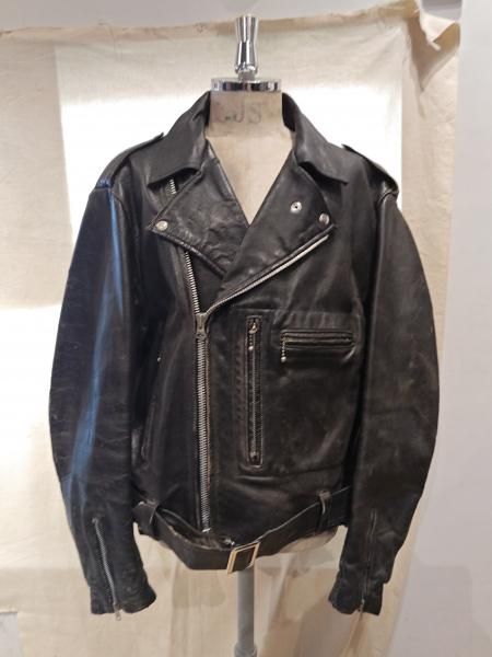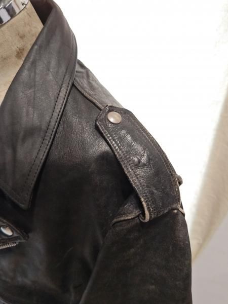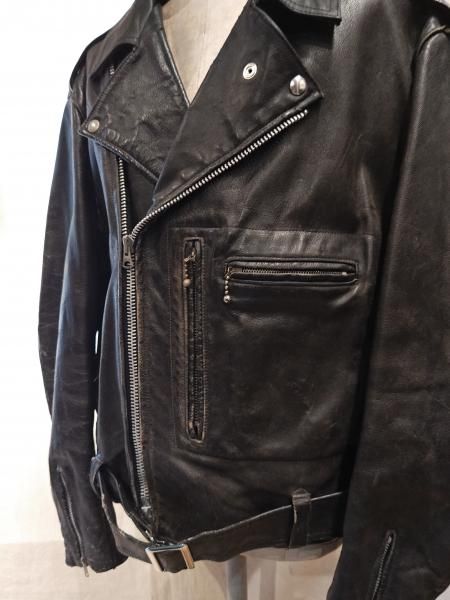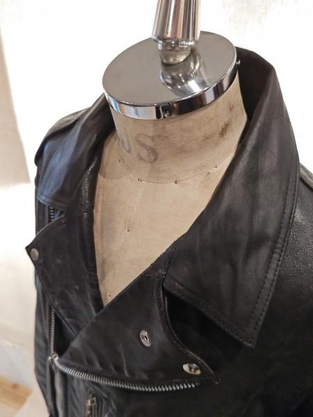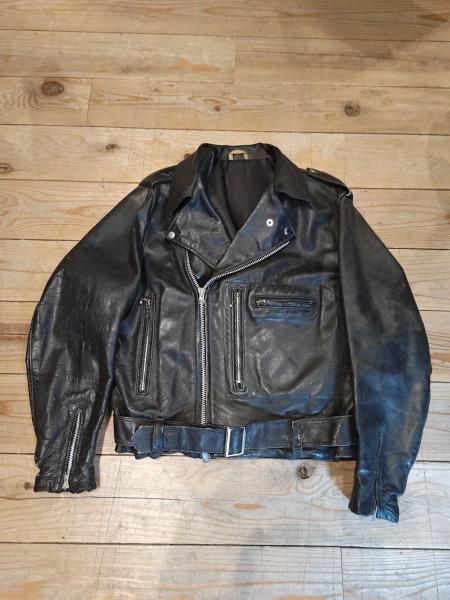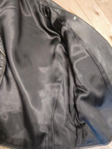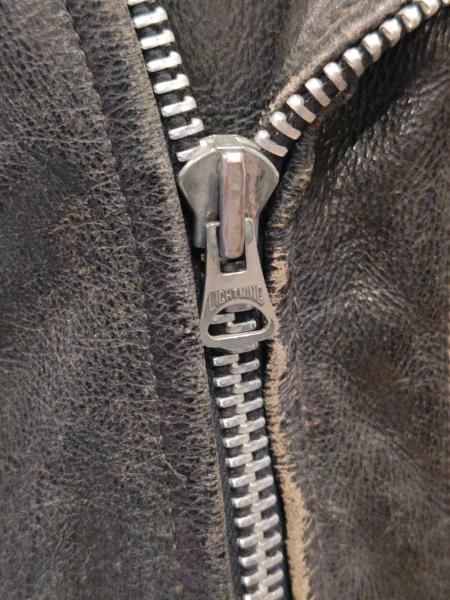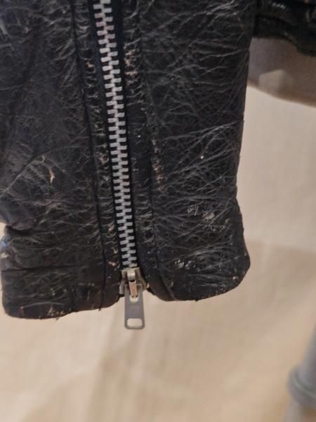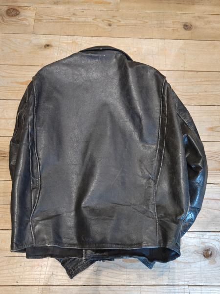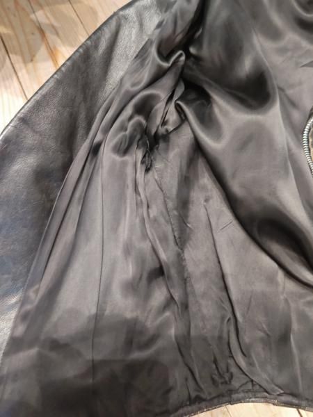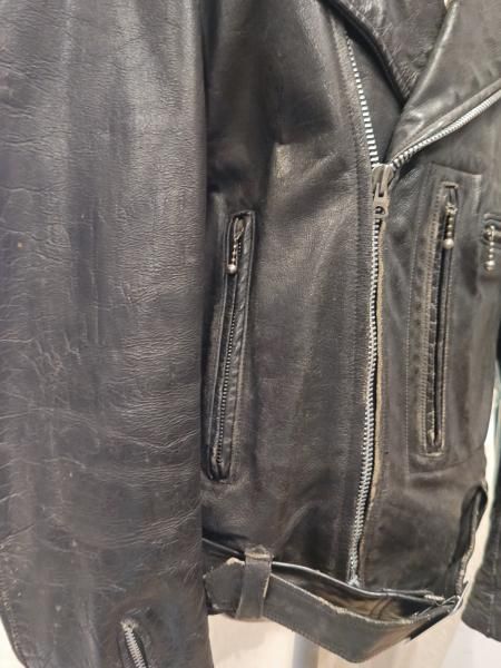 タグはありませんがLewis Leatherのレザージャケットです。 メインジッパーは交換されています。 レザーの状態はステッチはしっかりとしています。革スレは強くみられますが、大きなダメージはみられません。ファスナー稼動も問題ありません。 裏地が交換されています。