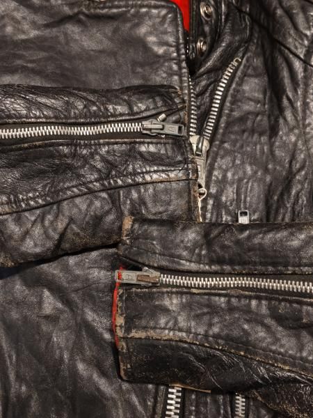 70年代英国製のレザージャケットです。 メインジッパーはALBERTです。ファスナー稼動は問題ありません。 着用感はありますが大きなダメージはみられません。 | |