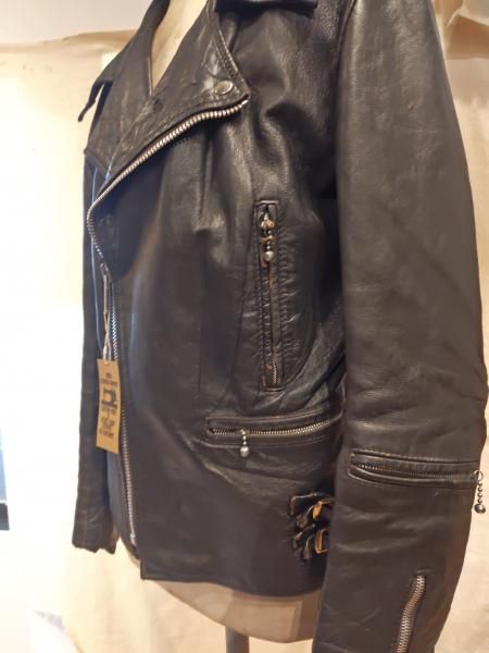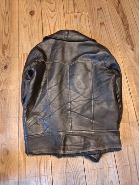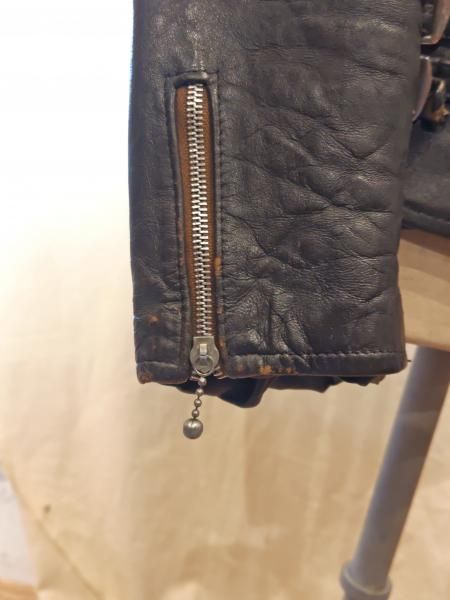80年代ヨーロッパ製のレザーライダースジャケットです。 メインジッパーはYKKです。レザーの状態は、ステッチもしっかりとしています。 革スレは全体的にみられます。大きなダメージはみられません。 ファスナー稼動も問題ありません。 | |