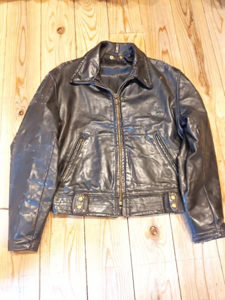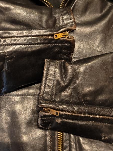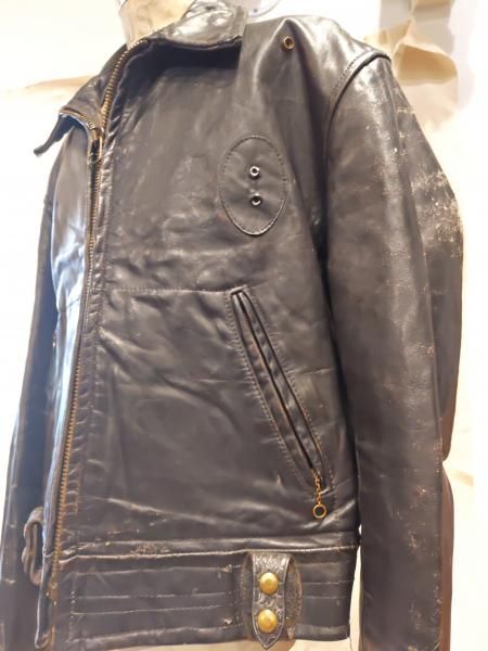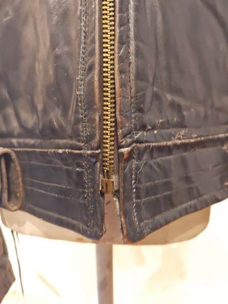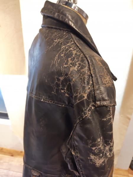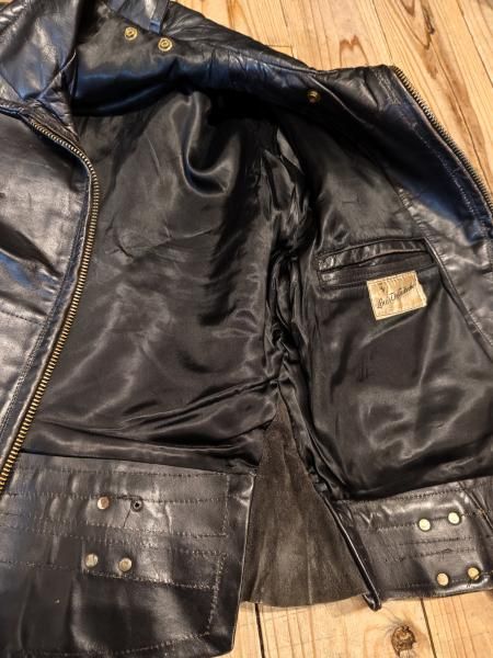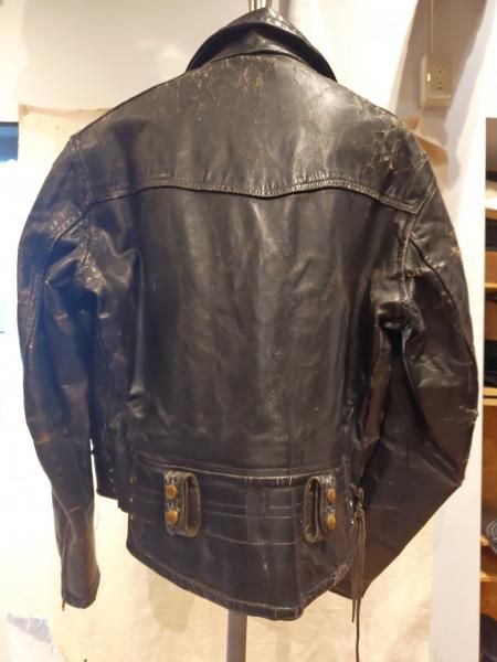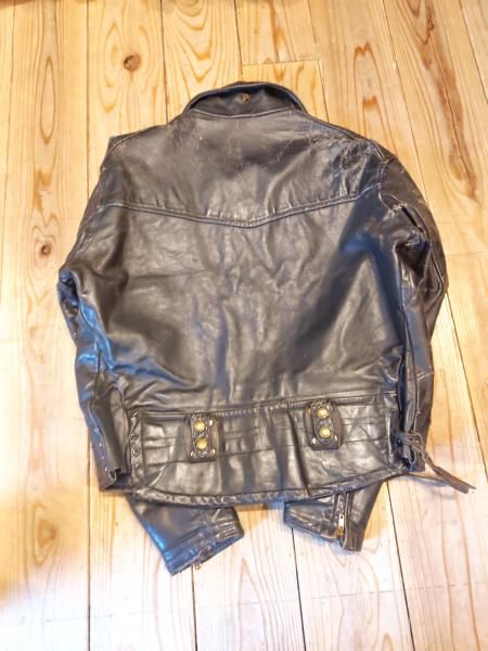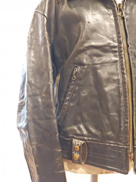 米国製Louis The Tailor incのレザージャケットです。 ジッパーはすべてTALONです。レザーの状態は、革スレは強く出ていますが大きなダメージはみられません。 ファスナー稼動も問題ありません。 ステッチもしっかりとしています。 | |
