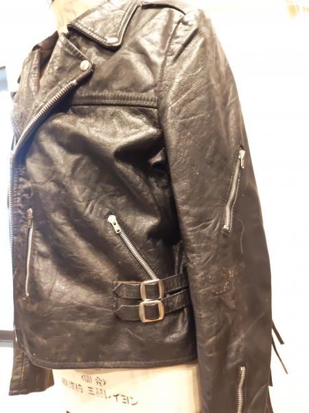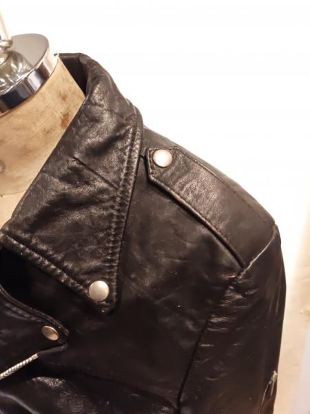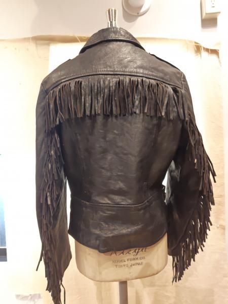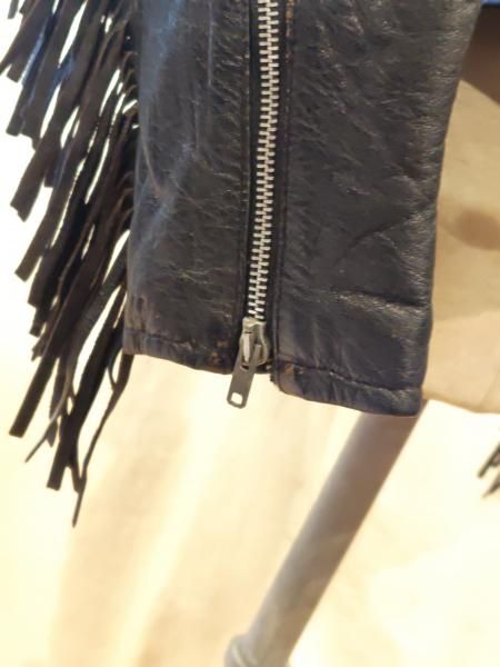 70~80年代ヨーロッパ製のフリンジレザージャケットですメインジッパーはアルミYKKです。レザーの状態は、ステッチもしっかりとしています。 革スレは全体的にみられますが、大きなダメージはみられません。 ファスナー稼動も問題ありません。前オーナーにより裏地にビーズ細工が施されています。 | |