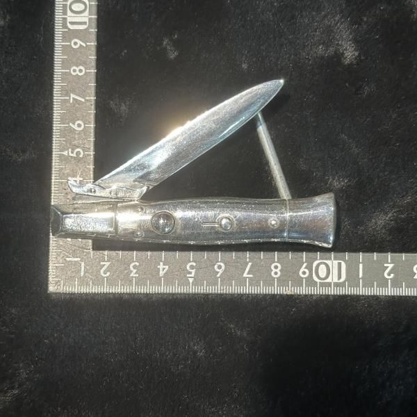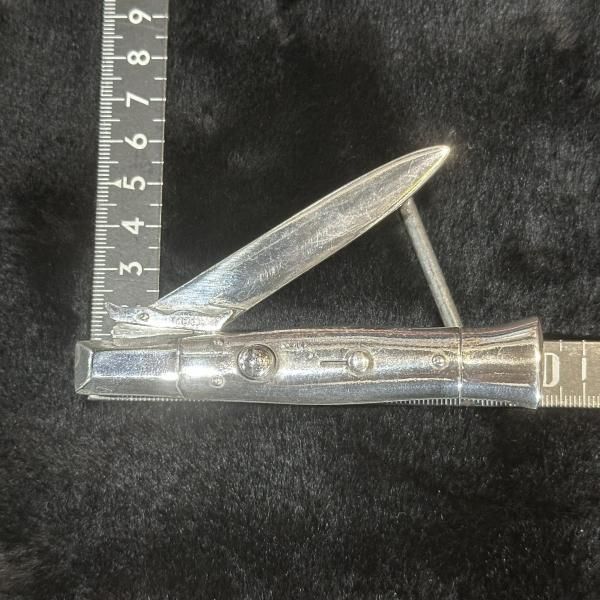 1950年代に実際に存在したレアなSwitchbladeバックルを復活させました。形をワックスから仕上げました、モデルにしたのは、名古屋の大先輩から譲り受けた、Switchbladeになります。若い頃、何十本か手に入れ、捌いたナイフと同じだったのであえてチープなスタイルのナイフを選びました。唯一無二、この機会に是非。 | |
