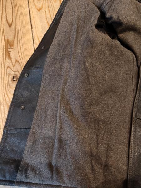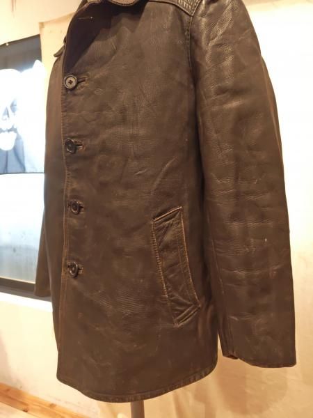40~50年代のフランス製レザーコートです。メインジッパーはECLAIRです。 ヨーロッパ古着特有のタイトなシルエットのデザインが特徴です。 また裏地にはウールが使用され、デザイン性と実用性も兼ね備えています。 レザーの状態は、ステッチもしっかりとしています。 革スレは全体的にみられますが、大きなダメージはみられません。 ベルトが欠品しています。 | |