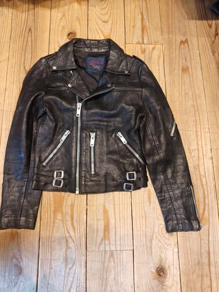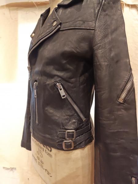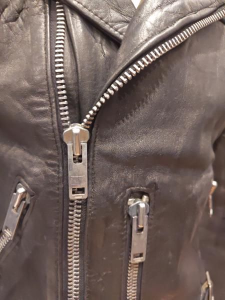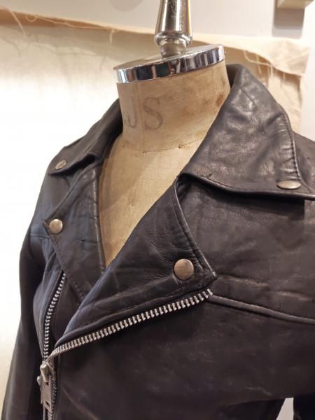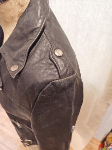 80年代英国製designed leather garmentsのレザージャケットです。メインジッパーはアルミYKKです。レザーの状態は、ステッチもしっかりとしています。 革スレは全体的にみられますが、大きなダメージはみられません。 ファスナー稼動も問題ありません。 | |