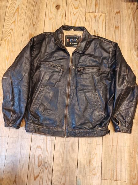 LA ROCKA! のレザージャケットです。 レザーの状態は、ステッチもしっかりとしています。 革スレは全体的にみられますが、大きなダメージはみられません。 ファスナー稼動も問題ありません。