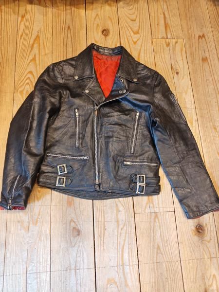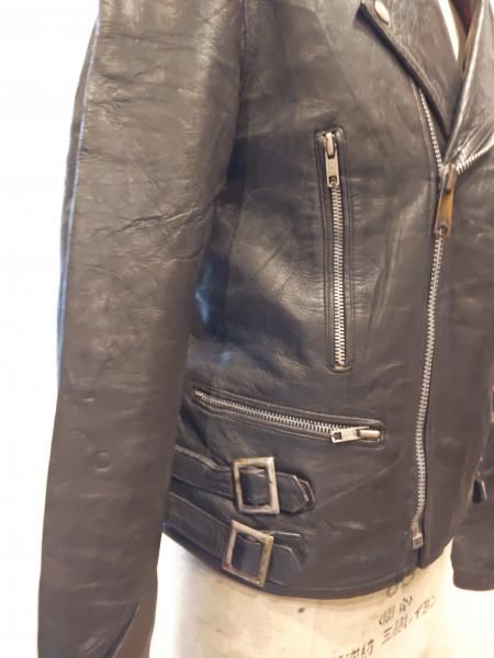 70年代ヨーロッパ製のレザーライダースジャケットです。 メインジッパーはYKKです。レザーの状態は、ステッチもしっかりとしています。 革スレは全体的にみられます。大きなダメージはみられません。 ファスナー稼動も問題ありません。 | |