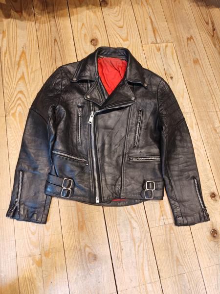 70年代ヨーロッパ製のレザーライダースジャケットです。 メインジッパーはYKKです。レザーの状態は、ステッチもしっかりとしています。 革スレは全体的にみられます。大きなダメージはみられません。 ファスナー稼動も問題ありません。 | |