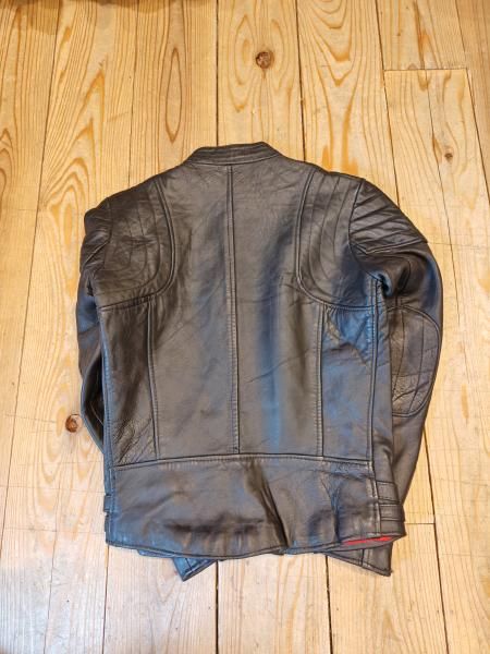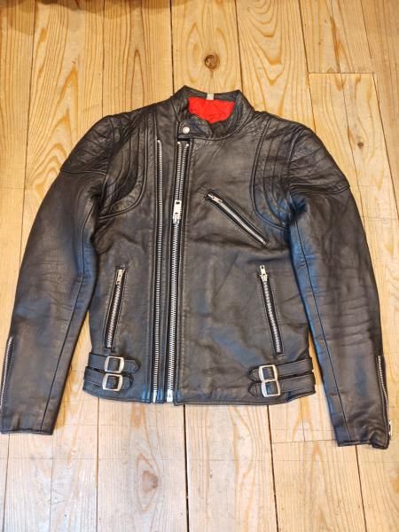 70年代のREAL LEATHERのレザーライダースジャケットです。 ジッパーはYKKです。レザーの状態は、ステッチもしっかりとしています。 革スレは全体的にみられますが大きなダメージはみられません。 ファスナー稼動も問題ありません。 | |