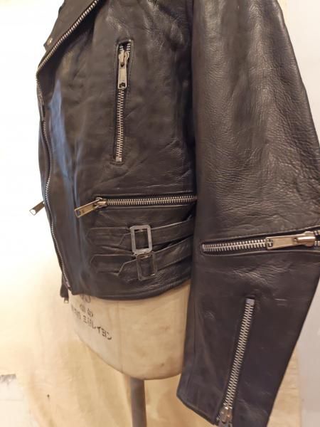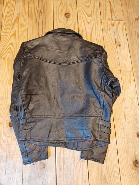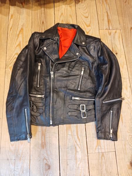 70~80年代ヨーロッパ製のレザーライダースジャケットです。レザーの状態は、ステッチもしっかりとしています。 革スレは全体的にみられます。大きなダメージはみられません。 ファスナー稼動も問題ありません。 | |