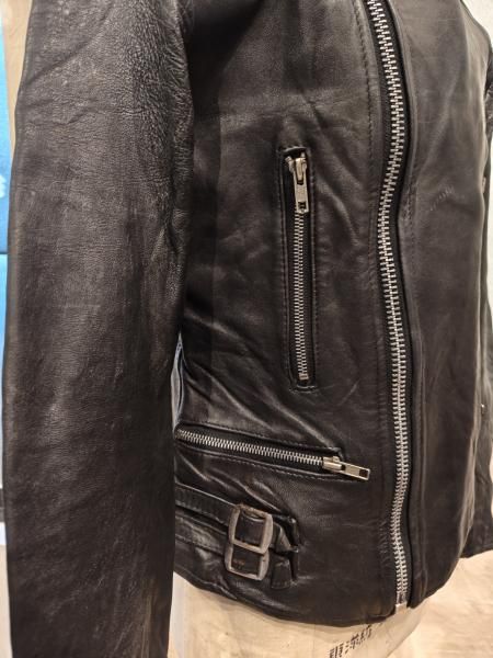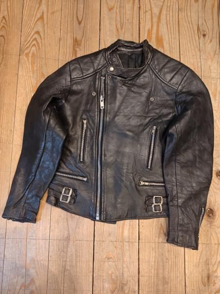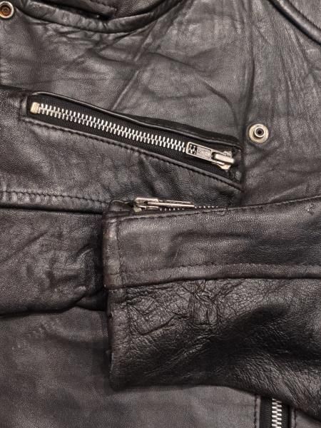 70~80年代ヨーロッパ製のレザーライダースジャケットです。 メインジッパーYKKです。レザーの状態は、ステッチもしっかりとしています。 革スレは全体的にみられます。大きなダメージはみられません。 ファスナー稼動も問題ありません。 | |