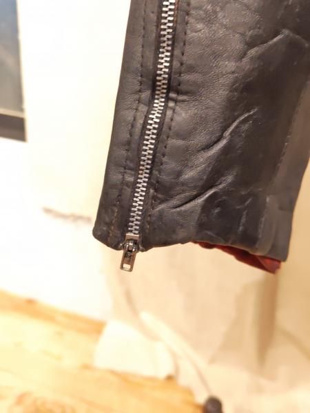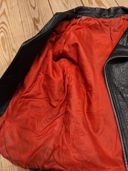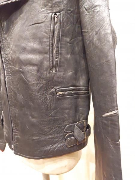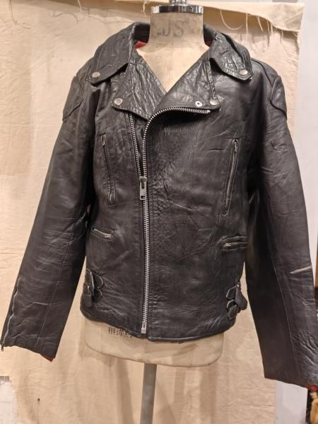 70~80年代ヨーロッパ製のレザーライダースジャケットです。メインジッパーはYKKです。レザーの状態は、ステッチもしっかりとしています。 革スレは全体的にみられます。大きなダメージはみられません。 ファスナー稼動も問題ありません。 | |