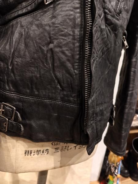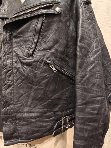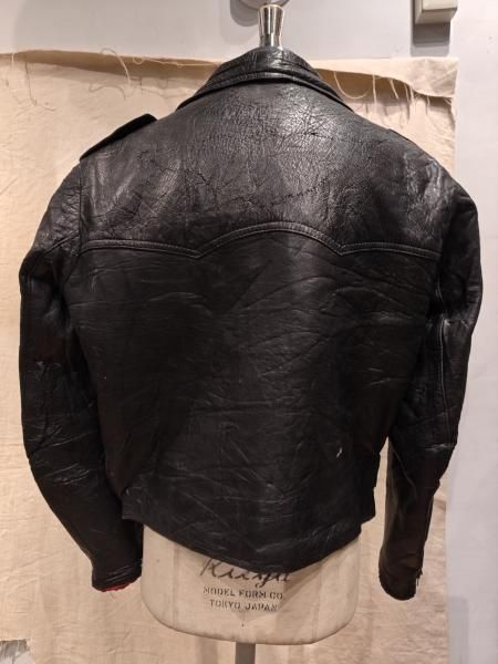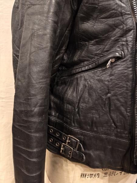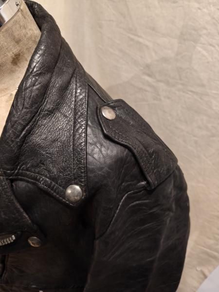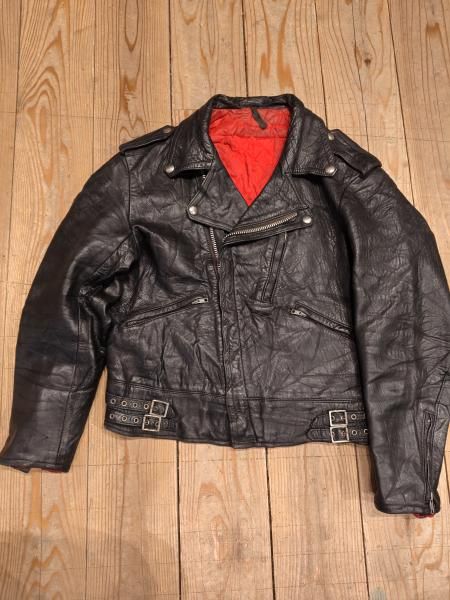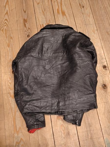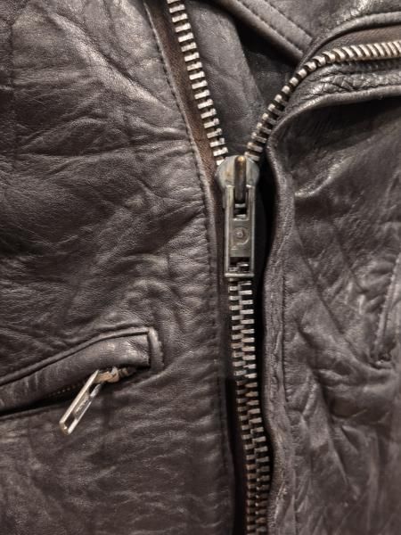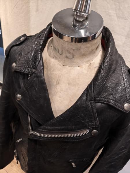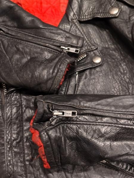 80年代MASCOTのレザージャケットです。 メインジッパーはOPTIに交換されています。レザーの状態は、革スレはみられますが大きなダメージはみられません。 ファスナー稼動も問題ありません。 ステッチもしっかりとしています。左袖ジッパーが交換されています。 | |