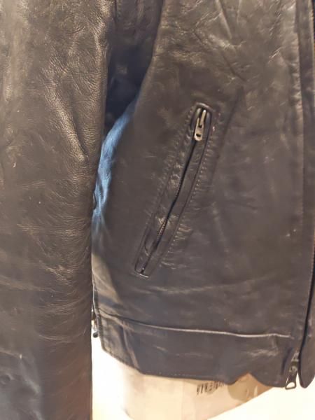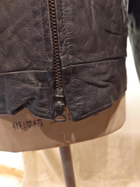 70年代米国製Fur companyのレザージャケットです。 フロントジッパーはLENZIPです。レザーの状態は、革スレはみられますが大きなダメージはみられません。 ファスナー稼動も問題ありません。 ステッチもしっかりとしています。 | |
