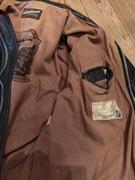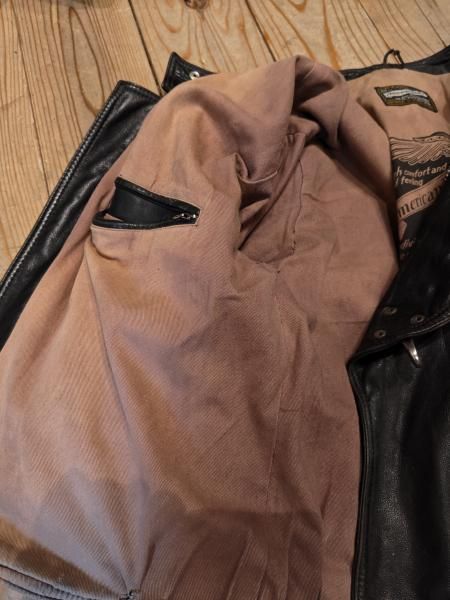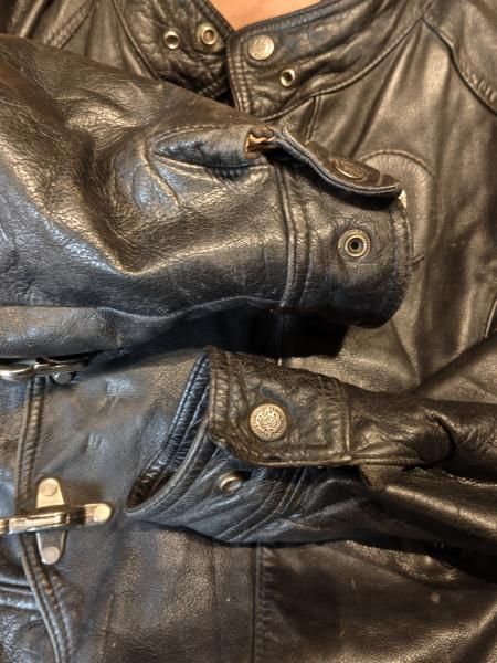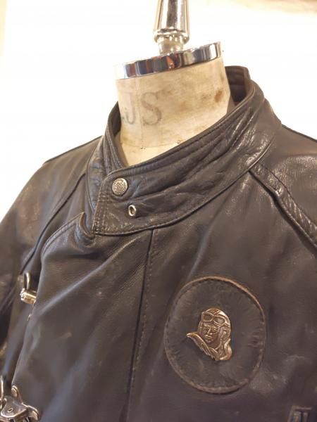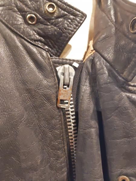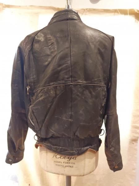 80年代のヨーロッパ製American basicsレザージャケットです。 すべてのジッパーがアルミYKKです。レザーの状態は、ステッチもしっかりとしています。 革スレは全体的にみられますが、大きなダメージはみられません。 ファスナー稼動も問題ありません。 | |