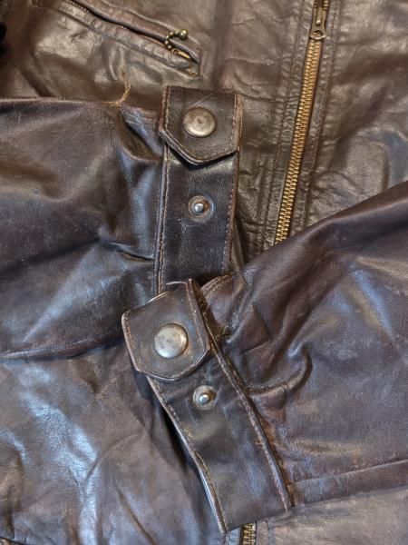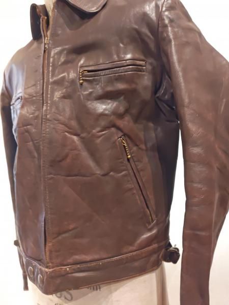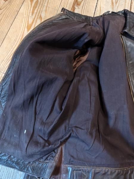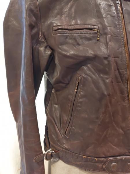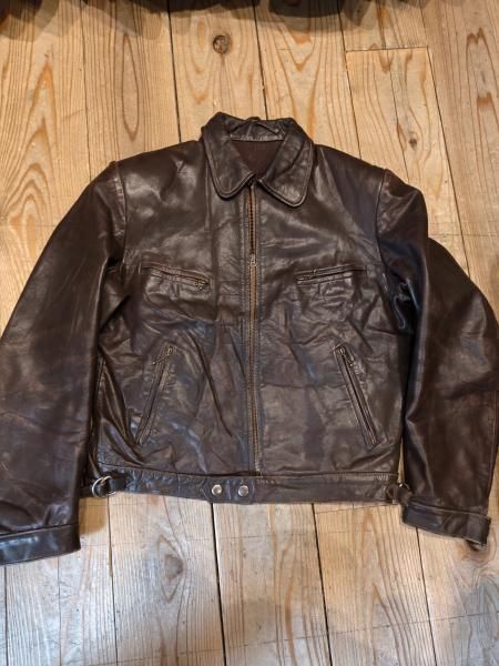 50年代ヨーロッパのレザージャケットです。 メインジッパーはlightninngです。レザーの状態は、ステッチもしっかりとしています。 革スレは全体的にみられますが、大きなダメージはみられません。 ファスナー稼動も問題ありません。 | |