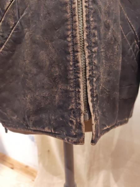 レザーの状態は、ステッチもしっかりとしています。 革スレは全体的にみられますが、大きなダメージはみられません。 ファスナー稼動も問題ありません。