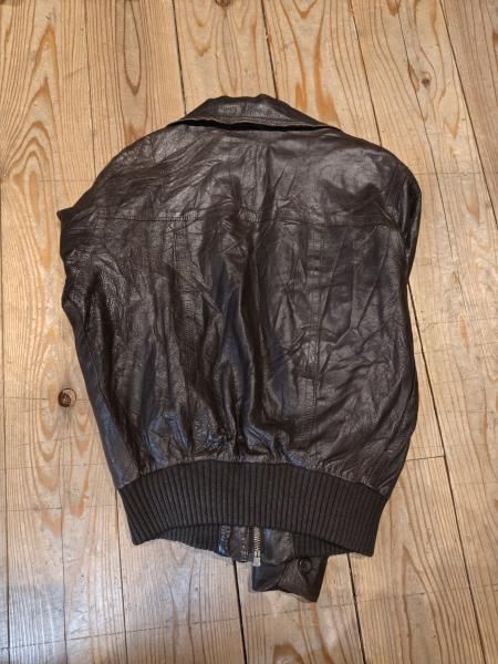 60年代ドイツ製のシングルレザージャケットです。 メインジッパーはZIPPです レザーの状態は、ステッチもしっかりとしています。 革スレは全体的にみられますが、大きなダメージはみられません。 ファスナー稼動も問題ありません。 | |
