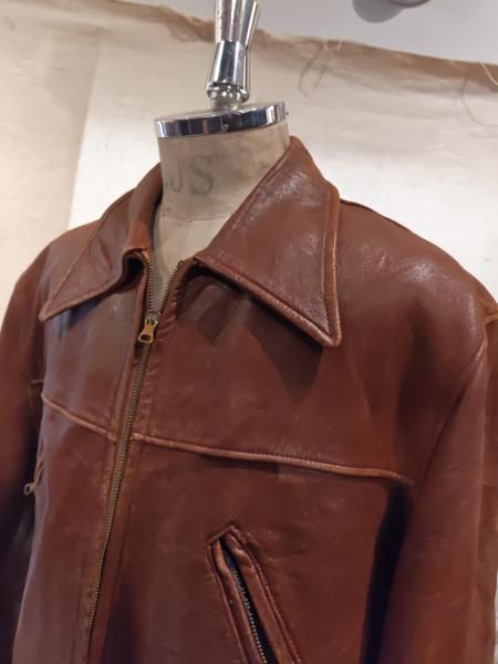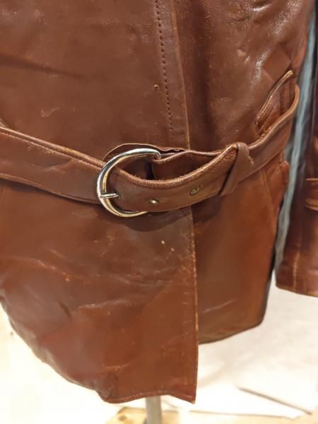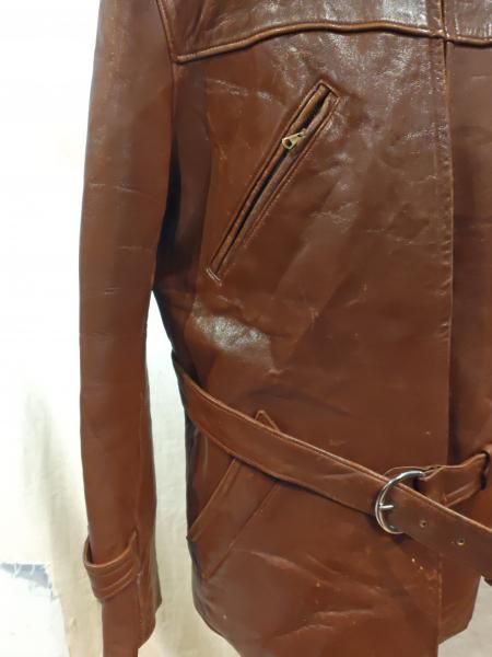 40年代のヨーロッパ製のレザーカーコートジャケットです。 レザーの状態は、ステッチもしっかりとしています。革スレはみられますが、大きなダメージはみられません。ファスナー稼動も問題ありません。 ベルトが欠品しています。