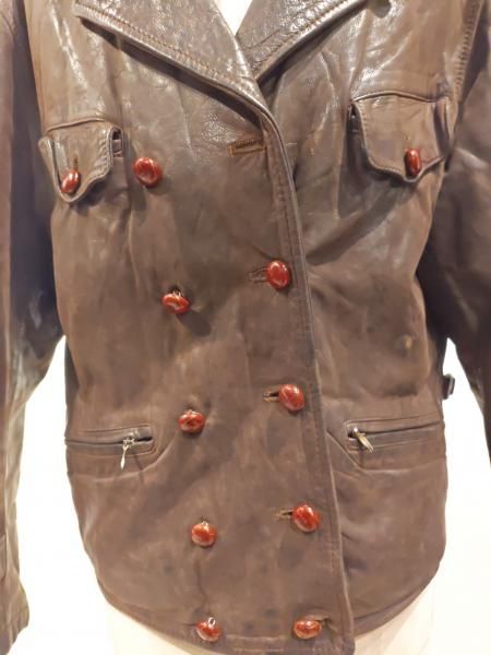 イタリア製STEWARTのレディースモーターサイクルレザージャケットです。 レザーの状態は、ステッチもしっかりとしています。 革スレは全体的にみられますが、大きなダメージはみられません。 | |