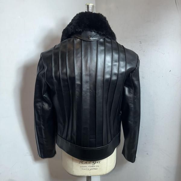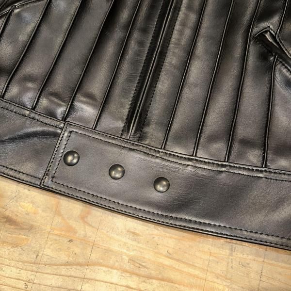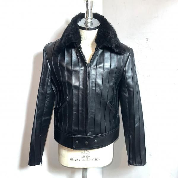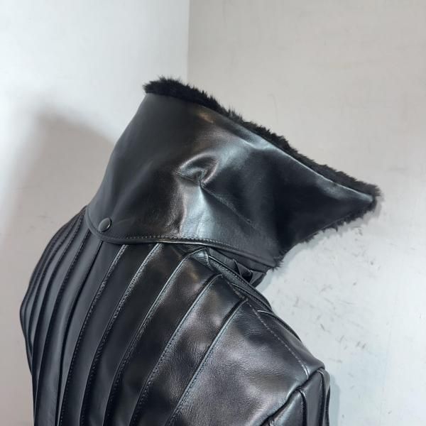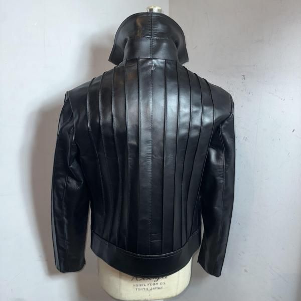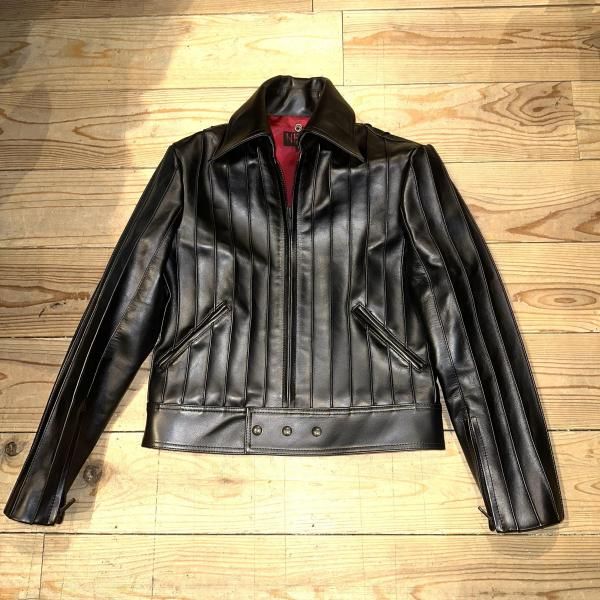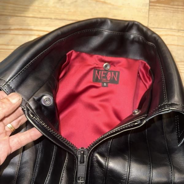【 BLACK ORUGA】 昨年リリースした DAMNEDのVo.デイヴ・ヴァニアンさんが 着用していた事でも知られている有名なモデルを オマージュしたのが、コチラのレザージャケットです。 研究を重ね、着やすさ機能性、見た目、パターンを新たに作り直しました 革に関しては、姫路のタンナーで 光沢が強くエロイ革になります。 今回の革は、黒の浸透染めになる為 より一層、モード感を出しました。 また、ジッパー、ドットボタンには より一層クールさを出す為、ダールブラックメッキを施し、ジッパーは、ネオンには、珍しくykk、ドットボタンは、1970年代のDOT社、US製のデッドストックの物を使いました。取り外し式の襟ボアは、標準装備です。 NEONの拘りが詰まったBLACK ORUGA(黒い女神)を この機会に是非。 | |