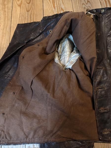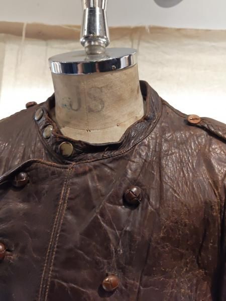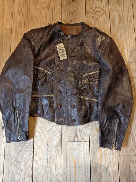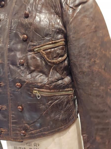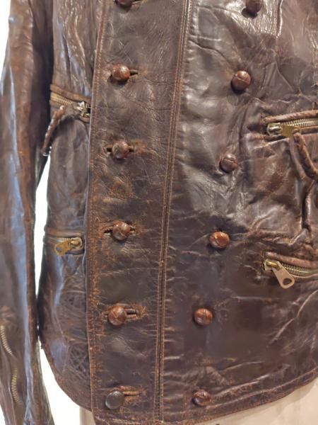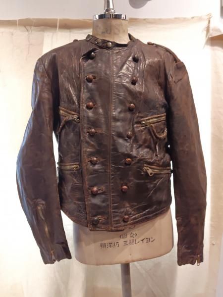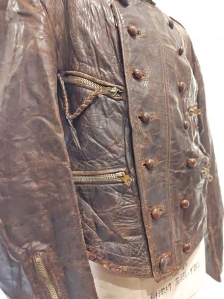 30~40年代ドイツ製のモーターサイクルレザージャケットです。 レザーの状態は、ステッチもしっかりとしています。 革スレは全体的にみられますが、大きなダメージはみられません。