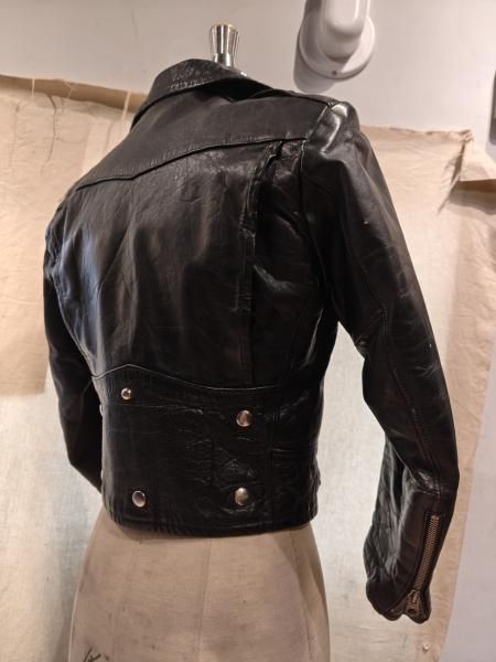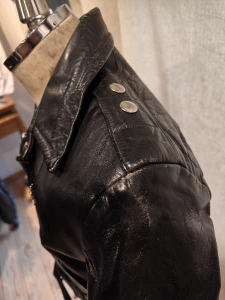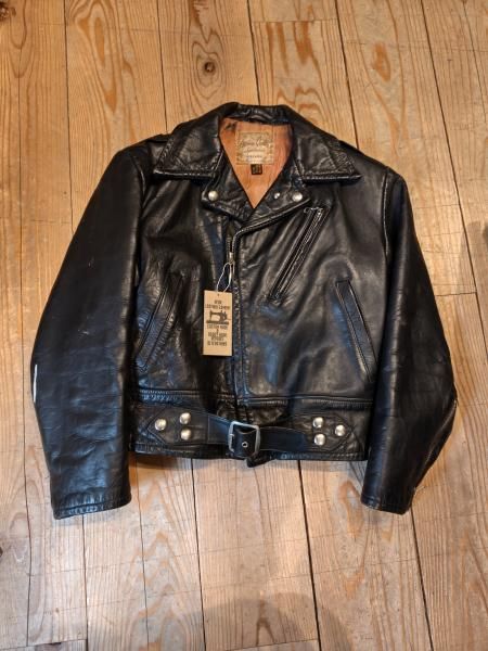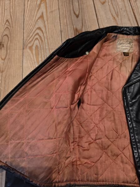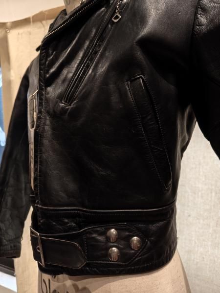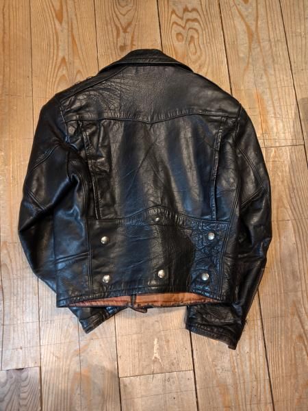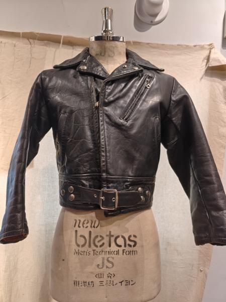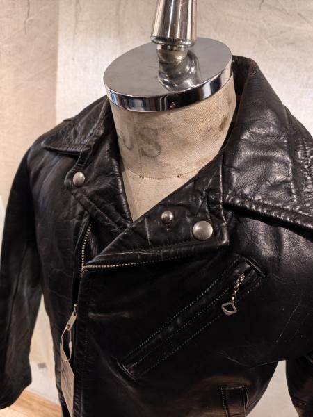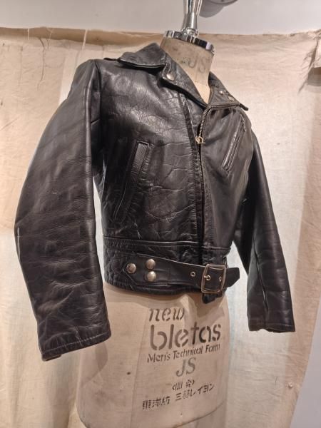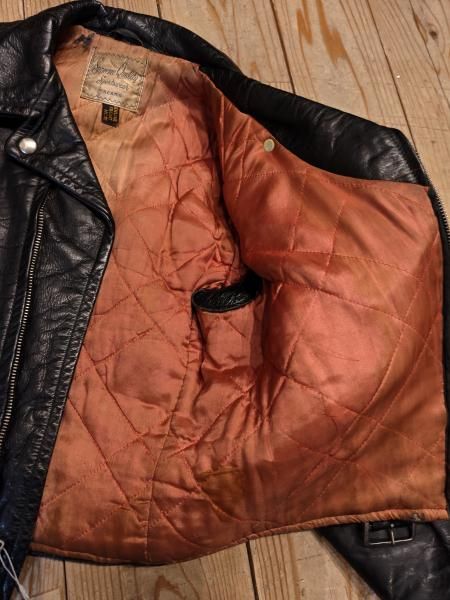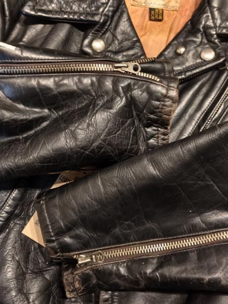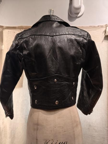 | 50年代SEARSのレディースレザージャケットです。 フロントジッパーはTALONです。 レザーの状態は、ステッチもしっかりとしています。 革スレは全体的にみられますが、大きなダメージはみられません。 ファスナー稼動も問題ありません。左袖ジッパーが交換されています。 | |