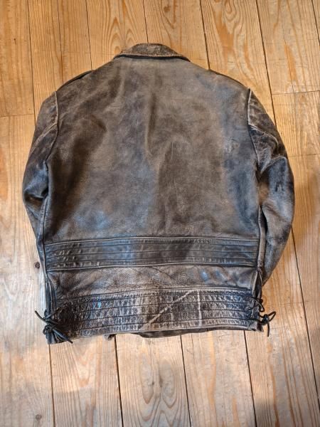 レザーの状態は、ステッチもしっかりとしています。 革スレは全体的に強くみられますが、大きなダメージはみられません。 ファスナー稼動も問題ありません。