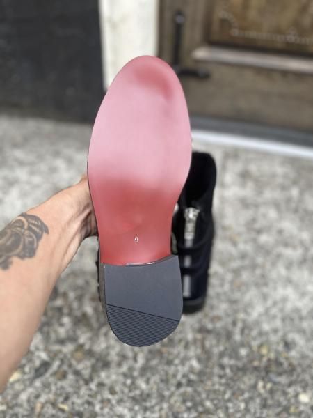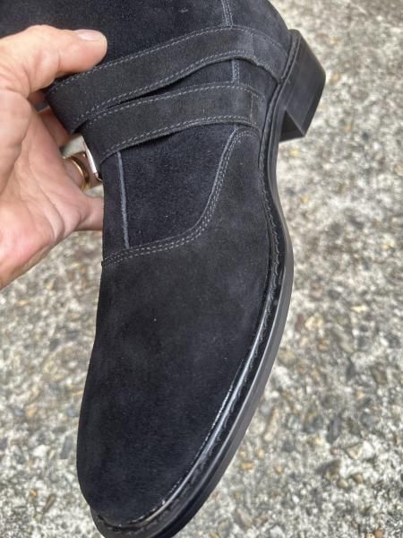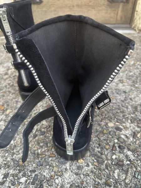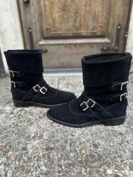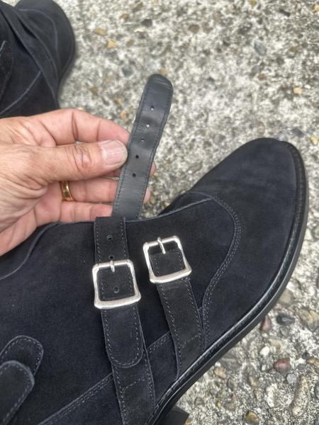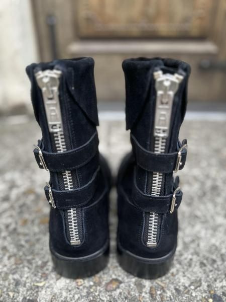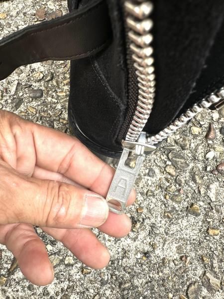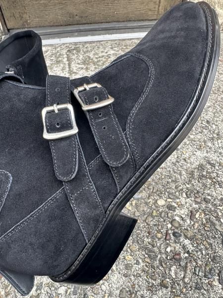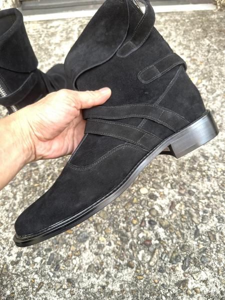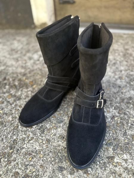 | NEON製、パイレーツブーツです。 期間受注商品です、数に限りがございます。 ご注文は、お急ぎ下さい。 多くのサンプル製作をし、待望のリリースです。 このブーツを作る為にオリジナルのブーツを年式違いで収集・参考にし、製作いましました。 メインZIPにはAのマークのALBERTジッパー (ベルギー)を使用しています。 フランスの工場から取り寄せました。 また、バックルは、現在入手困難な為、鋳造し NEONオリジナルとして作りました。 80年代のイギリス製のブーツには、欠かせない 形状のバックルです。 このバックルじゃないと始まりません。 大人な雰囲気を出す為、スウェードのブラックで 作りました。 ベルトの裏は、合皮では無く 表革を使い贅沢につくりました。 ソールの積み上げは、オリジナルはプラスチックですが、NEONの物は、革の積み上げになります。 ソールは、履き心地を考えゴムソールにしています。 履いていただくと、その良さがわかります。 ソール裏を赤にする事で、いやらしさをだしました。 インナーソールには、デカデカとNEONの 箔押しロゴが入ります。 靴作りに従事していた、私が自身を持って お届けするブーツ第一弾になります。 納期は、年明けの1月になります。 この機会に是非 | |