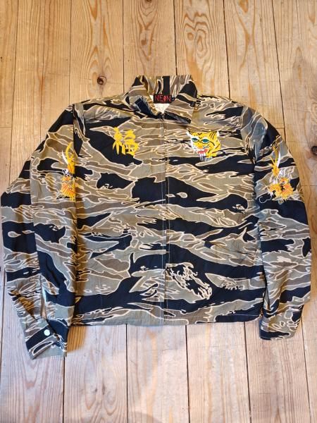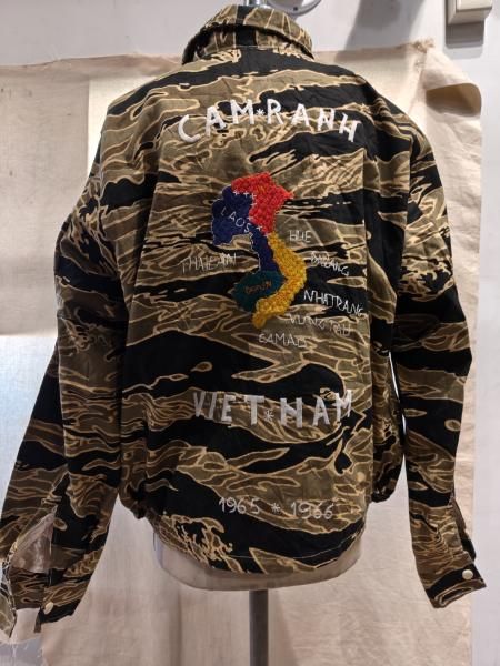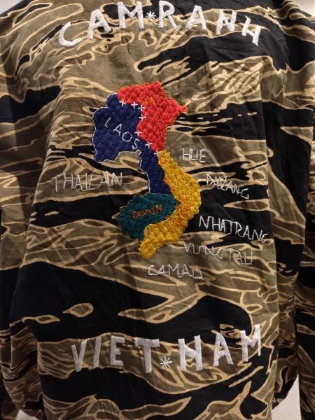 NEON製ベトナムジャケットです。海外の工場にて製作しました。スカジャンより手間の掛かる方法で刺繍されており良い意味で味のある仕上がりになっています。
