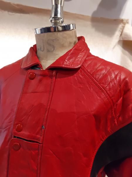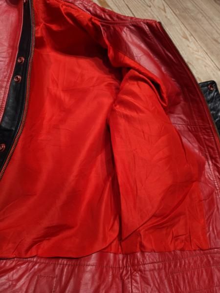 80年代イタリア製レザージャケットです。 レザーの状態は、ステッチもしっかりとしています。 革スレは全体的にみられますが、大きなダメージはみられません。 ファスナー稼動も問題ありません。 裏地に汚れがあります。