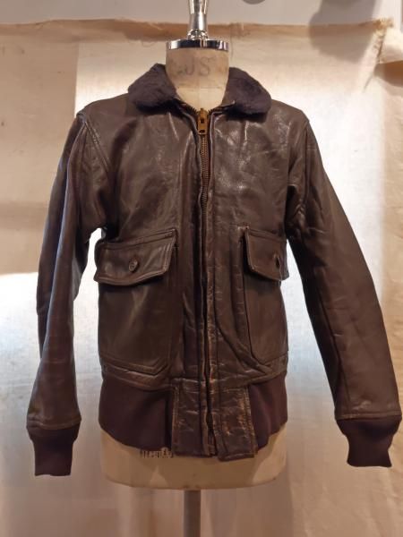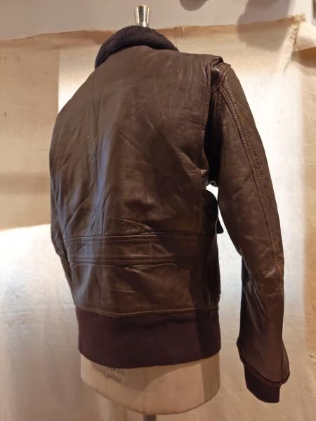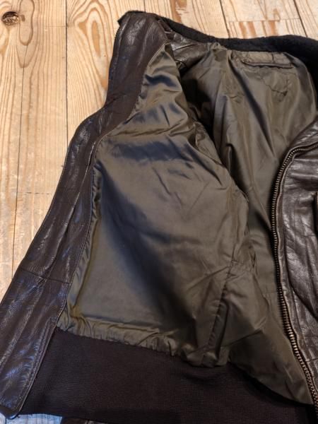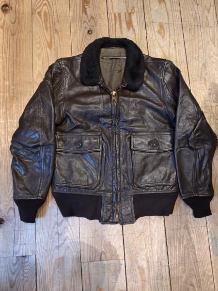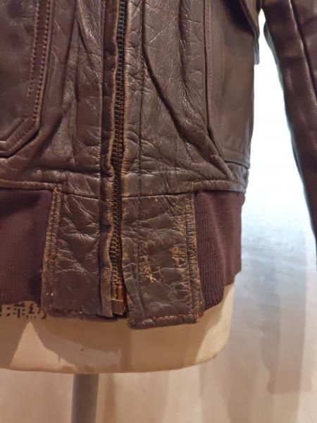 タグはありませんが70年製G-1レザーフライトジャケットです。 レザーの状態は、ステッチもしっかりとしています。 革スレは全体的に強くみられますが、大きなダメージはみられません。 ファスナー稼動も問題ありません。 裾、両袖リブが交換されています。 | |