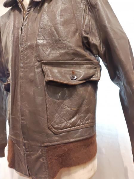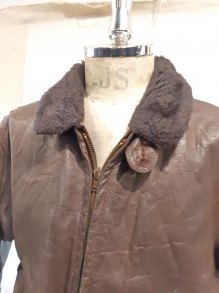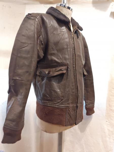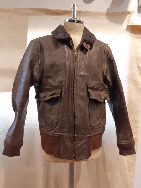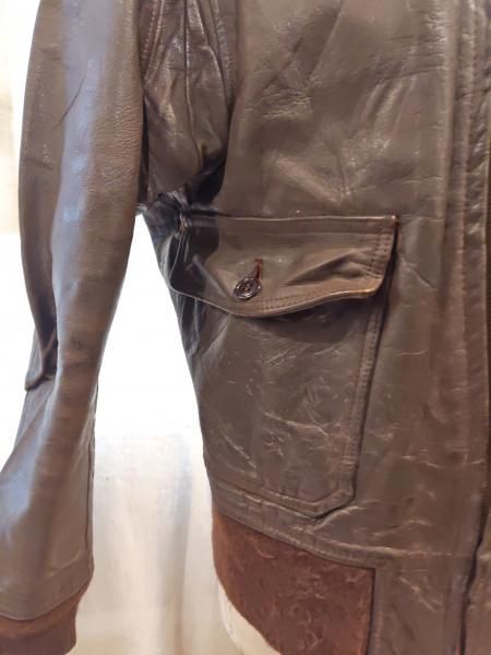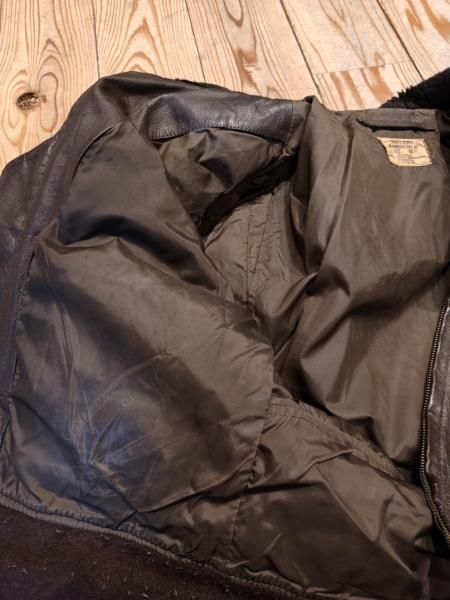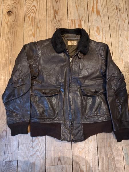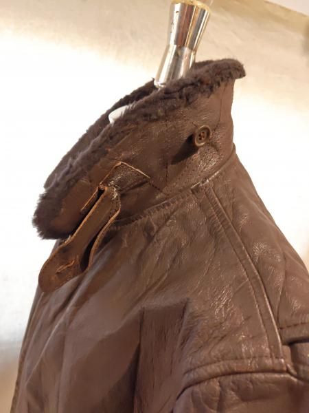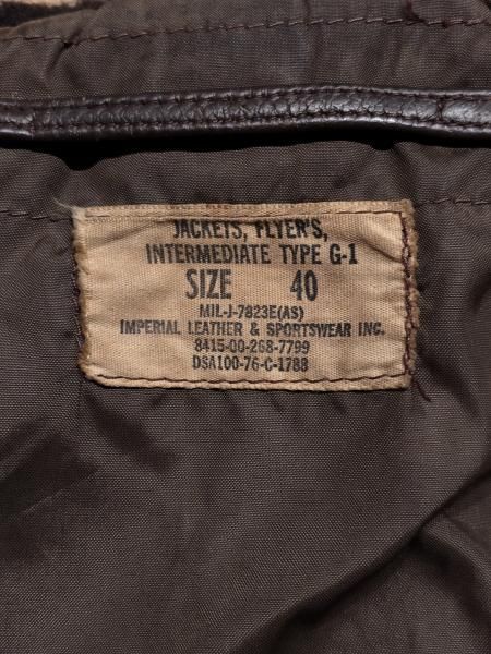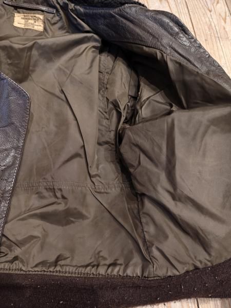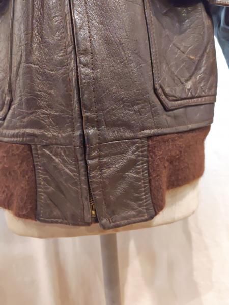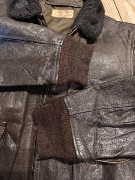 70年製G-1レザーフライトジャケットです。 1971年に【MIL-J-7823DE】(AP)が制定され作られたモデルです。 レザーの状態は、ステッチもしっかりとしています。 革スレは全体的に強くみられますが、大きなダメージはみられません。 ファスナー稼動も問題ありません。 裾、両袖リブが交換されています。 | |
