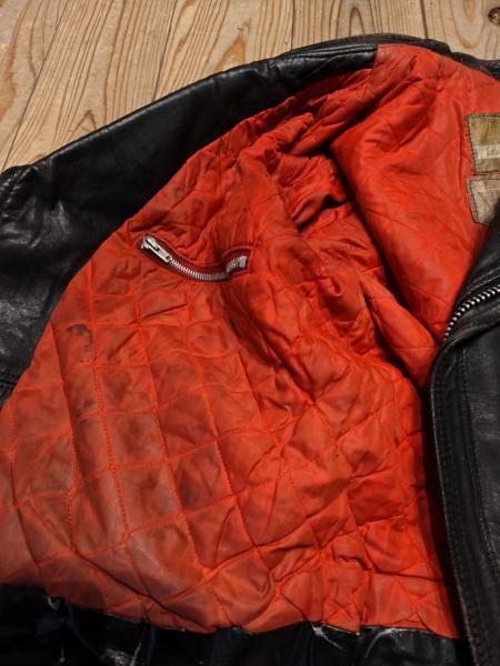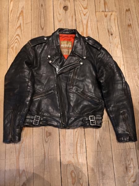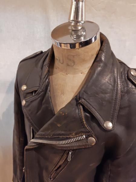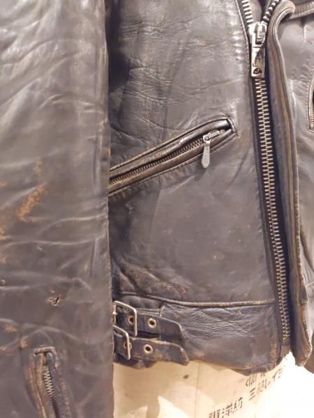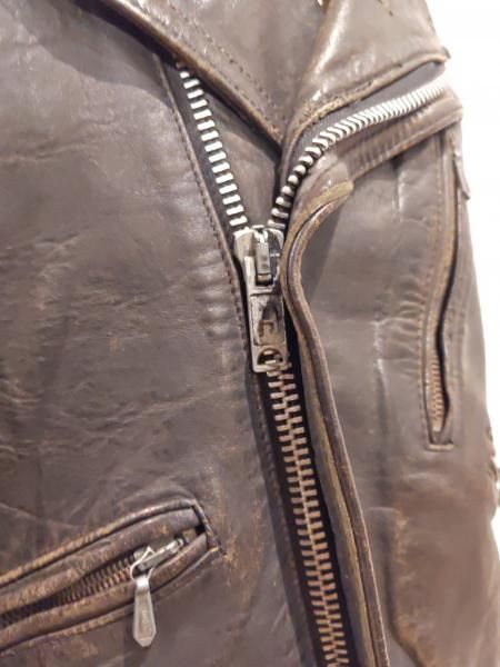 70年代MASCOTのレザージャケットです。 メインジッパーはALBERT、その他ジッパーはAEROです。レザーの状態は、革スレはみられますが大きなダメージはみられません。 ファスナー稼動も問題ありません。 ステッチもしっかりとしています。 | |