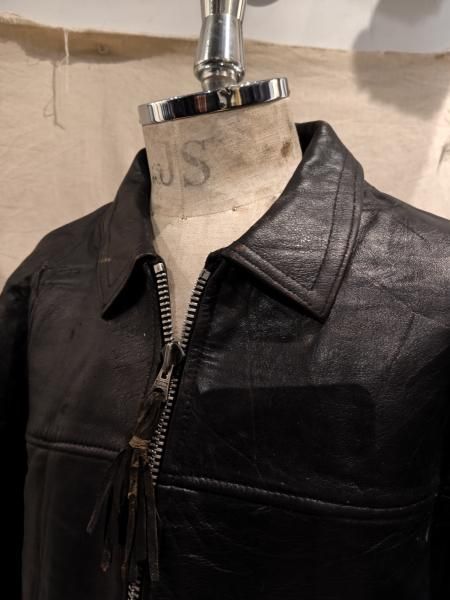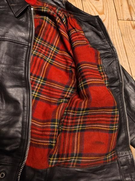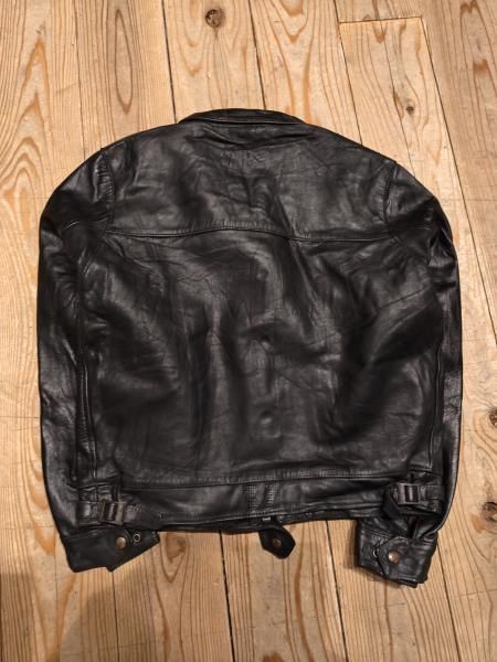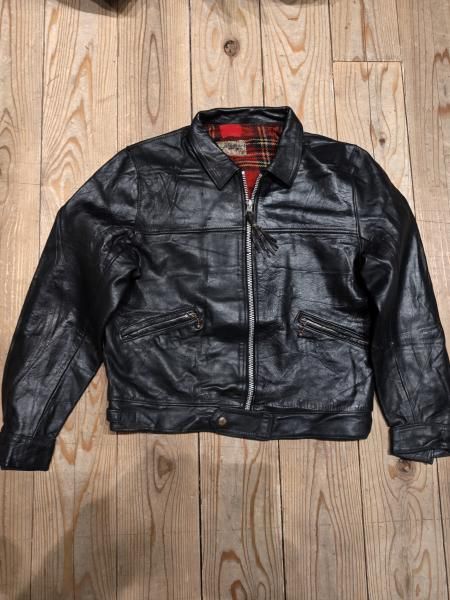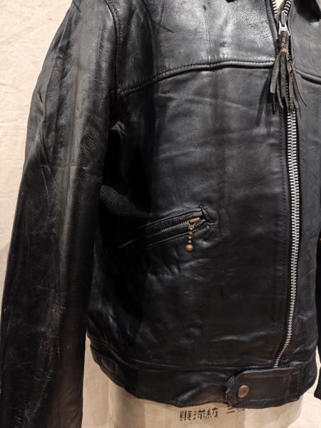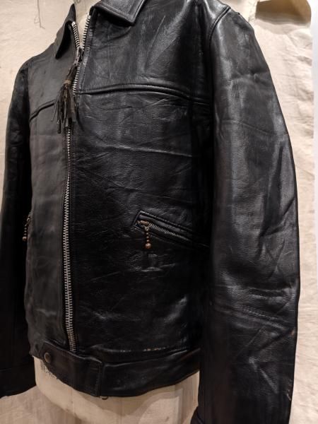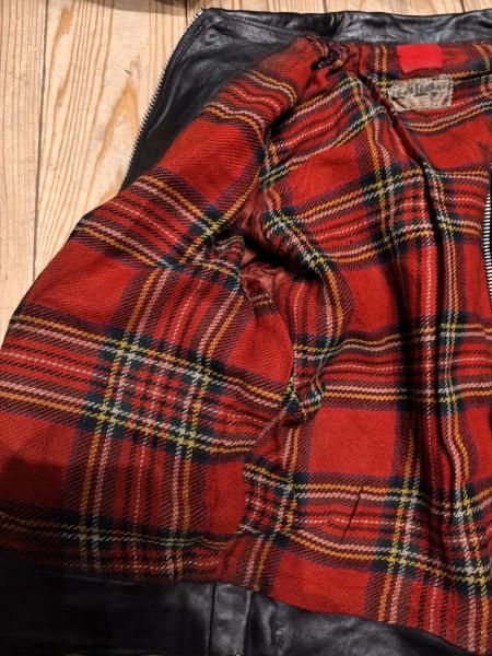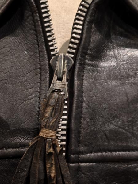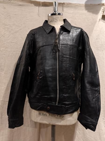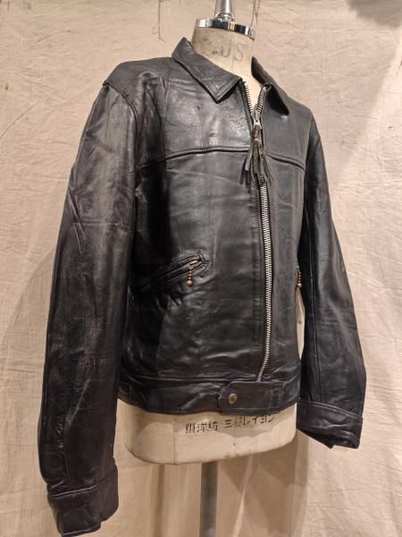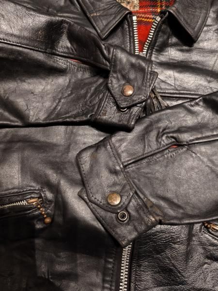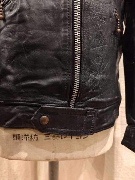 60年代の Lewis Leatherのレザージャケットです。 メインジッパーはLightningです。 レザーの状態は概ね良好で、ステッチもしっかりとしています。革スレはみられますが、大きなダメージはみられません。ファスナー稼動も問題ありません。 | |