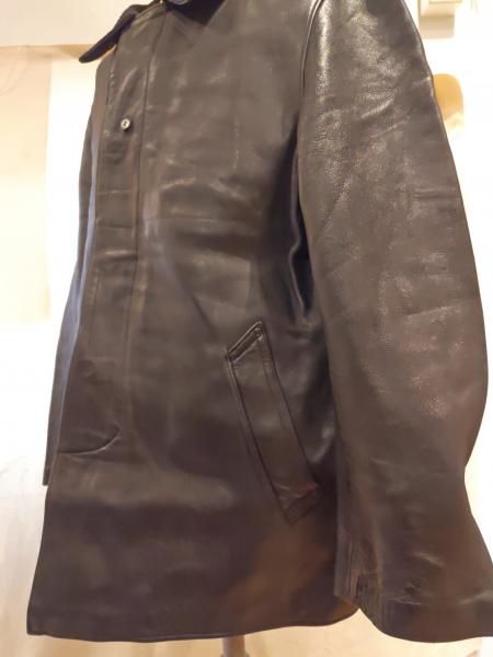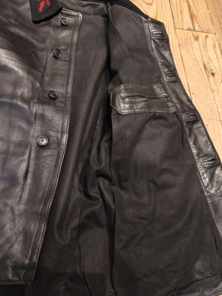 | 60~70年代フランス製のレザーコートです。 ヨーロッパ古着特有のタイトなシルエットのデザインが特徴です。 また裏地にはウールが使用され、デザイン性と実用性も兼ね備えています。 レザーの状態は、ステッチもしっかりとしています。 革スレは全体的にみられますが、大きなダメージはみられません。 | |