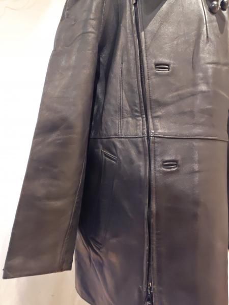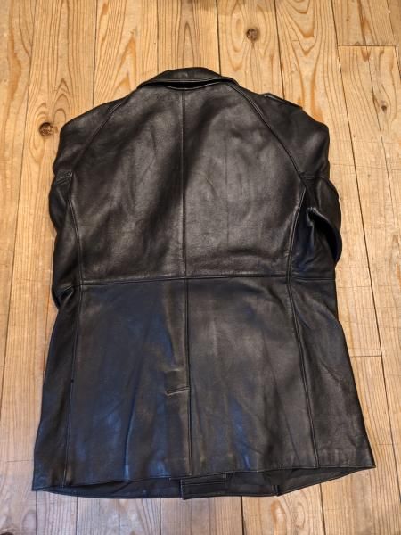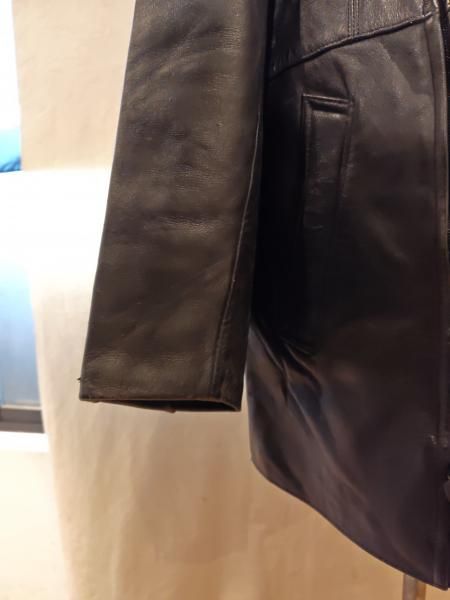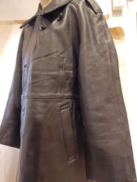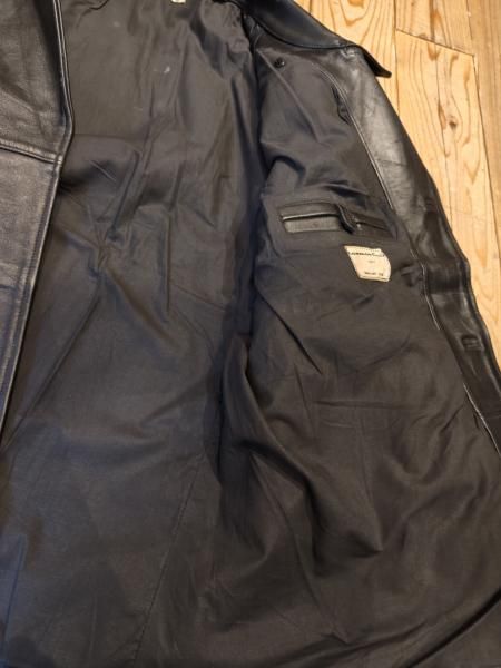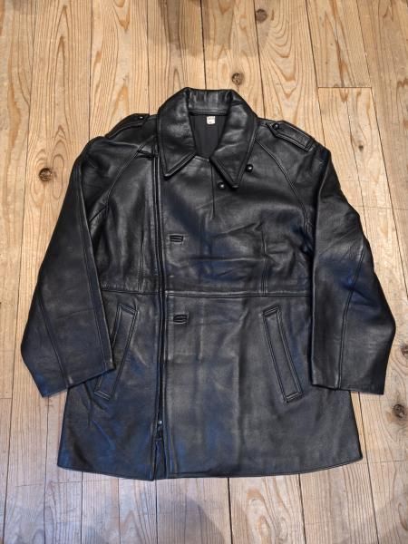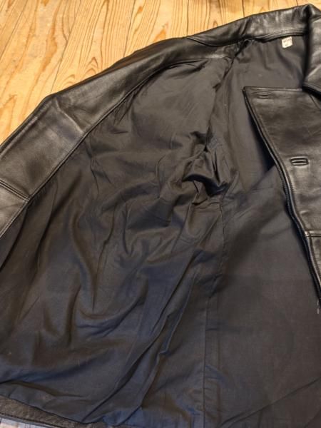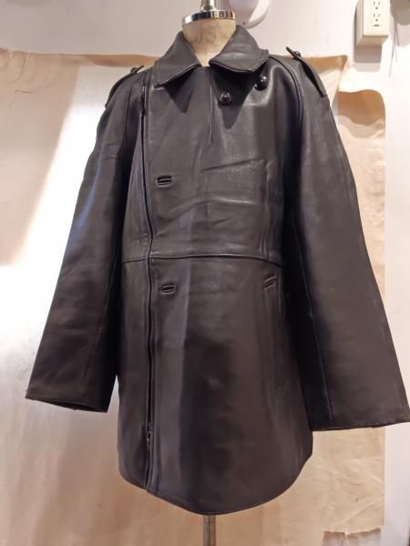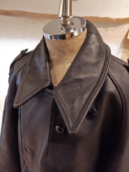 | 90年代のフランス軍のバイク部隊に支給されていレザーのモーターサイクルコートです。ヨーロッパ古着特有のタイトなシルエットのデザインが特徴です。レザーの状態は、ステッチもしっかりとしています。 革スレは全体的にみられますが、大きなダメージはみられません。前ボタン2つが欠損しています。 | |