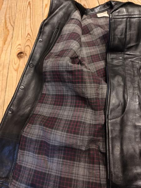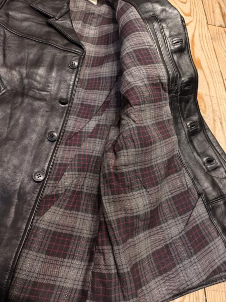 | 80年代フランス製のレザーコートです。 ヨーロッパ古着特有のタイトなシルエットのデザインが特徴です。 また裏地にはチェックのウールが使用され、デザイン性と実用性も兼ね備えています。 レザーの状態は、ステッチもしっかりとしています。 革スレは全体的にみられますが、大きなダメージはみられません。 | |