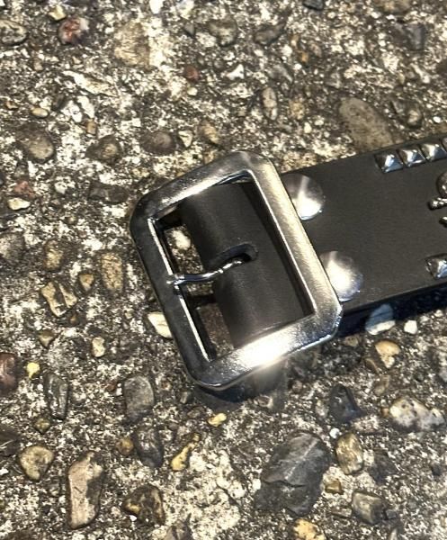 | NEONオリジナルOR GLORYスタッズ×スモールピラミッドの付いたスタッズベルトになります。多くのお問い合わせをいただいていたコチラですが、バックルを現行の八角バックルにして、再リリースになります。or gloryスタッズに限りがありますので、お急ぎ下さい。 | |